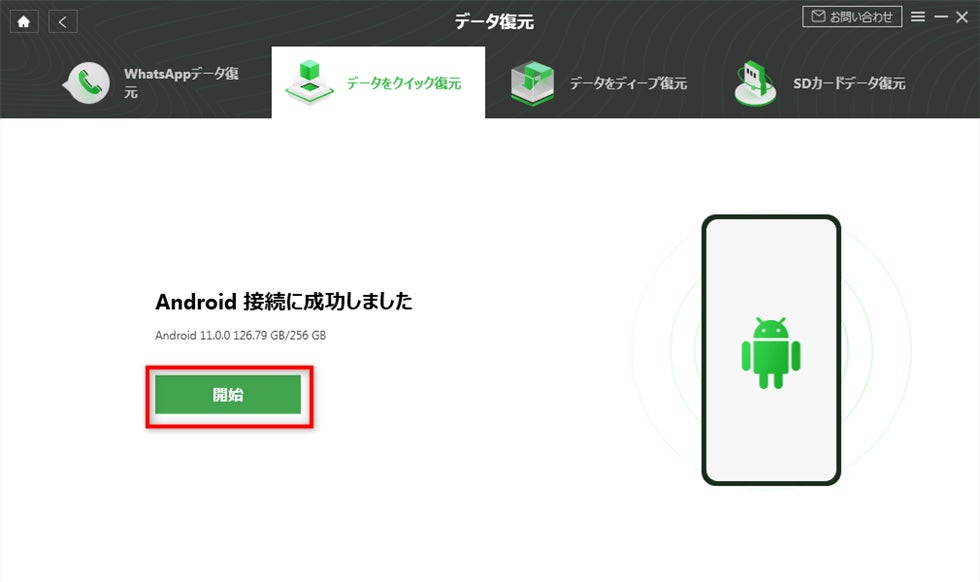 ステップ2、復元したいデータ種類をチェックし、「開始」をクリックします。
