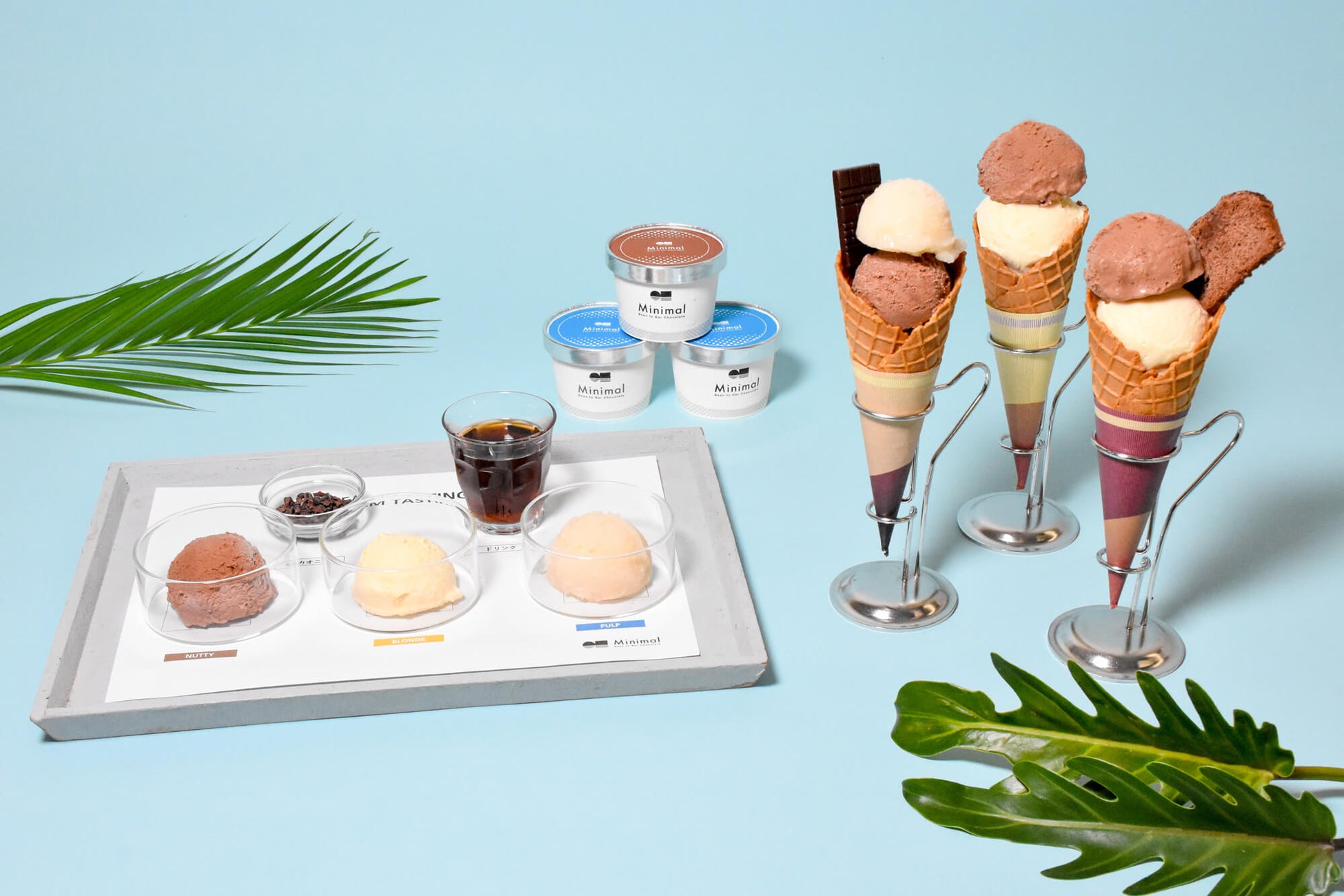 Minimal、夏季限定6つのアイスメニューが登場!濃厚なのに軽やかに楽しめるチョコレートアイスや希少なカカオの果肉「パルプ」のソルベ、食べ比べセットも。