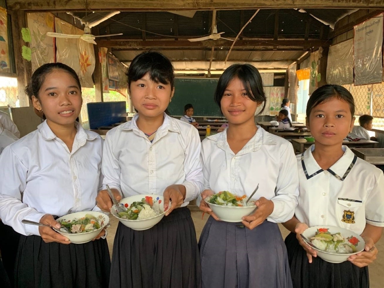 ご支援によりカンボジアの対象校全校で給食を提供できるように