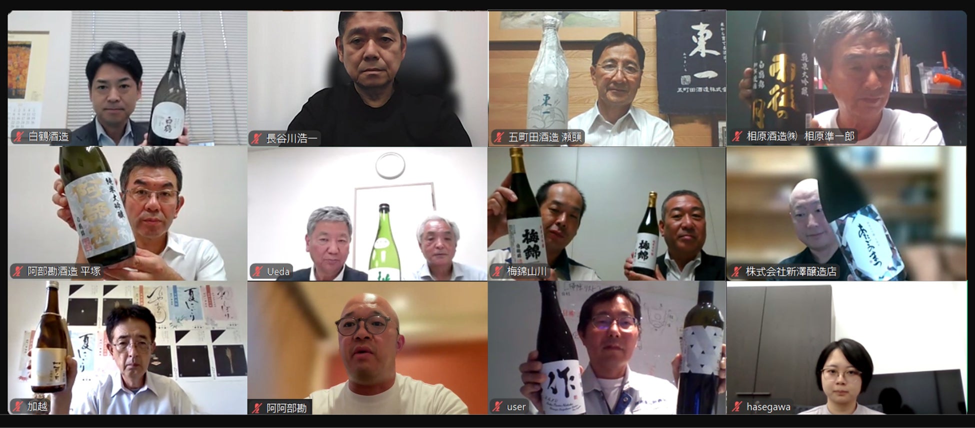 「白鶴錦」はその優れた品種特性が知られるところとなり、2012年に、はせがわ酒店の長谷川浩一社長のご紹介により高木酒造様の1蔵から白鶴錦の供給がはじまりました。年々その輪が広がり、現在は当社に加えて全国12の酒蔵(合計13社)で使用されています。このたび、これらの酒蔵がオンラインで一堂に会し、各蔵からの近況報告、2024年の白鶴錦の栽培状況、2023年度の醸造結果、きき酒結果について情報共有と意見交換を行いました。