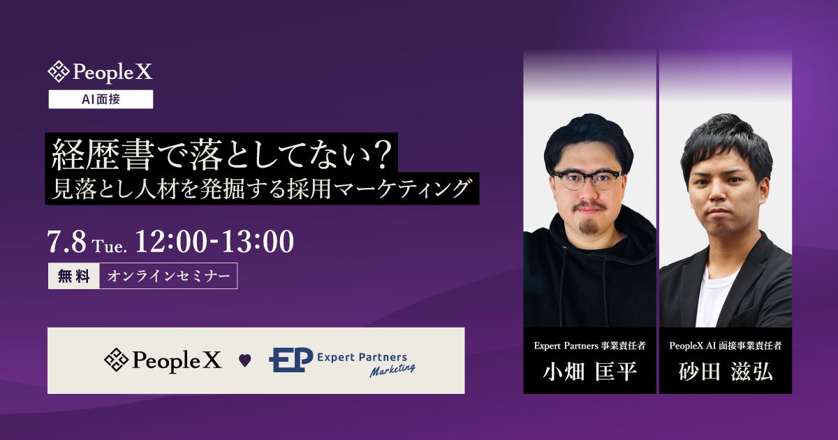 株式会社TWOSTONE&Sonsの100%子会社である株式会社Digital Arrow Partners(所在地:東京都渋谷区、代表取締役CEO:道家康貴、以下 Digital Arrow Partners)は、2025年7月8日(火)に株式会社PeopleX(本社:東京都新宿区、代表取締役CEO:橘大地、以下 PeopleX)と共催でウェビナーを開催することをお知らせいたします。