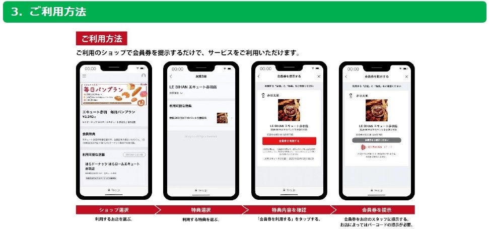 ● 利用方法:スマートフォンでサイト内画面操作し、店頭・施設内で提示して頂き、ご利用ください。