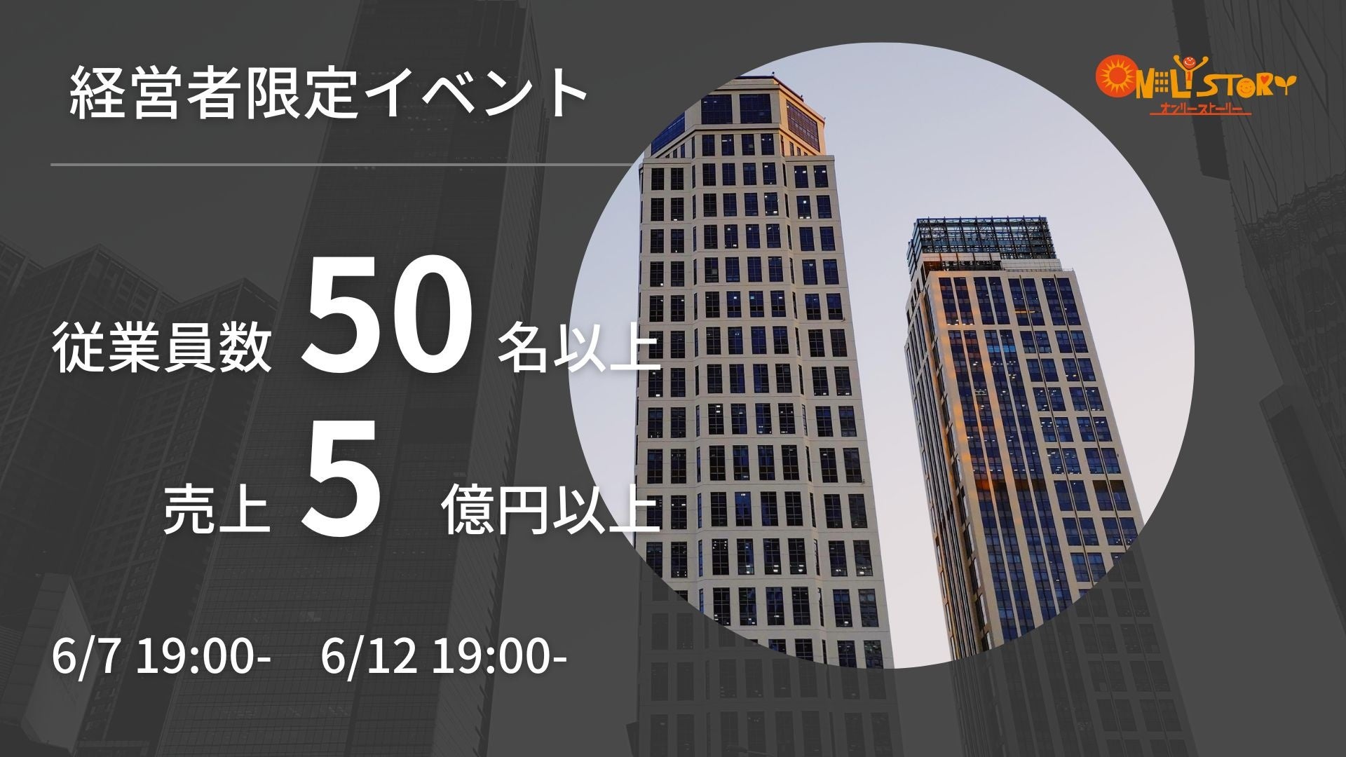6月7日(水)6月12日(月)19時〜 同規模 経営者限定イベント「ゴーゴー(50名・5億)会」を実施。好評につき、2週連続開催