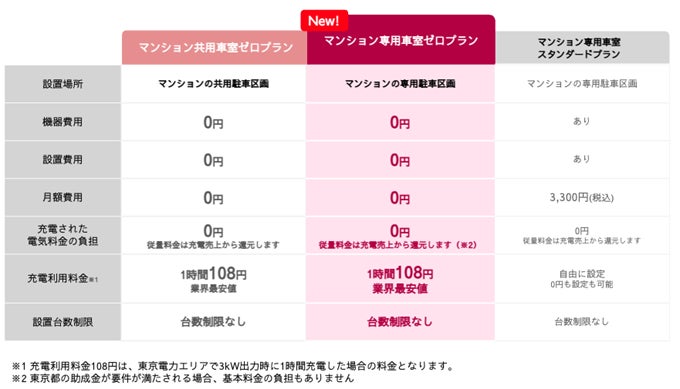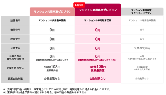 - 業界最安値のマンション充電料金、1時間108円 ※3kW出力時の場合