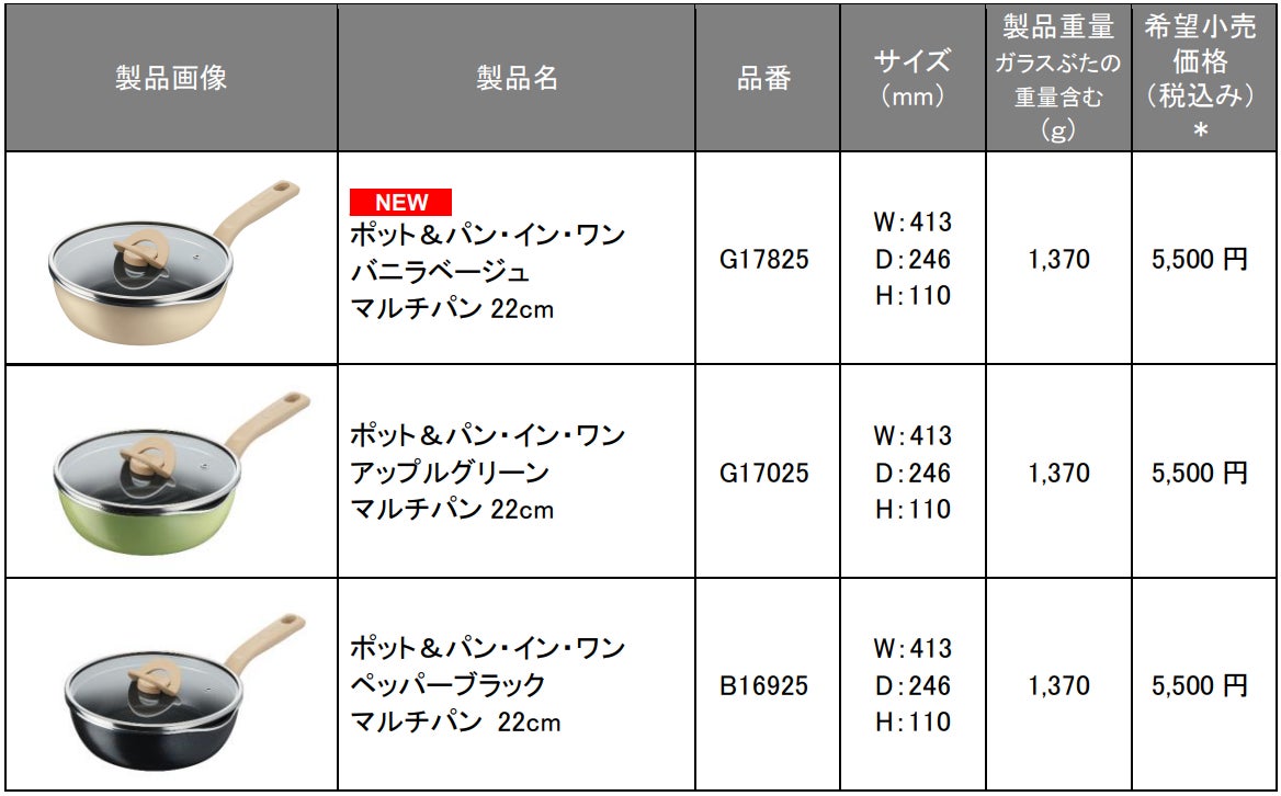 ティファール「ポット&パン・イン・ワン」ラインナップ