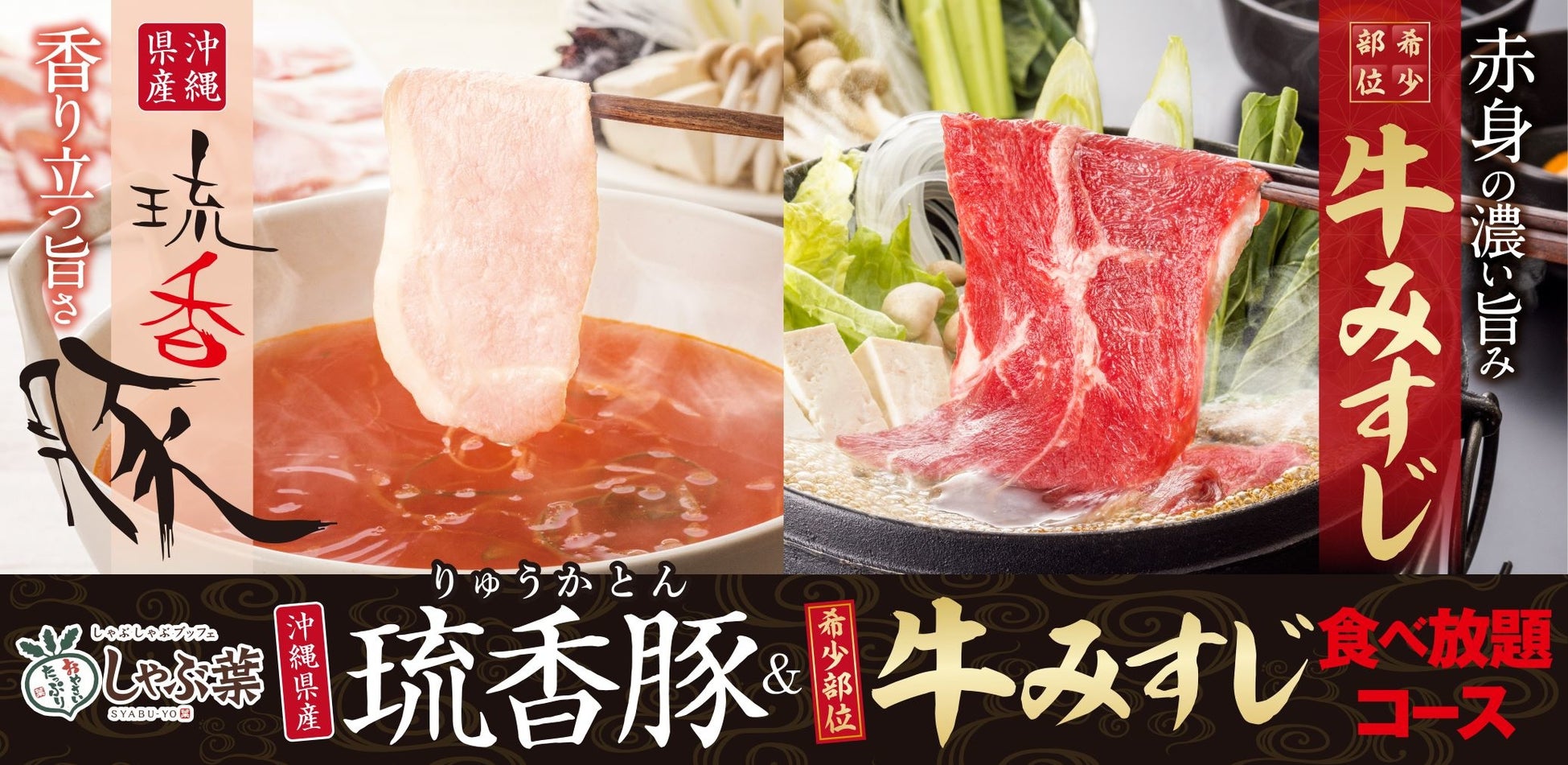 株式会社すかいらーくレストランツ(本社・東京都武蔵野市、代表取締役社長 大川原利明)が運営する「しゃぶ葉」では、2022年7月14日(木)より、「沖縄県産 琉香豚(りゅうかとん)&牛みすじ 食べ放題」をご提供いたします。