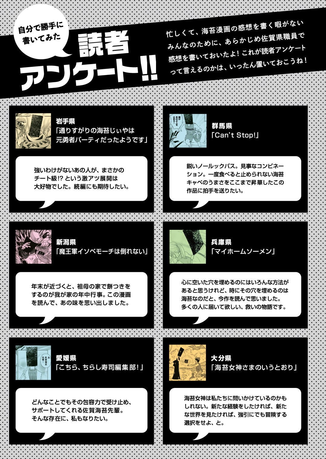 SNSで話題!海苔が主役の『佐賀海苔主役祭り』プロジェクト発佐賀海苔と46都道府県との妄想グルメ漫画全46作品を完全収録!3月17日「漫画週刊誌の日」に世界初・海苔コミック誌『藻刊サガノリ』完成!