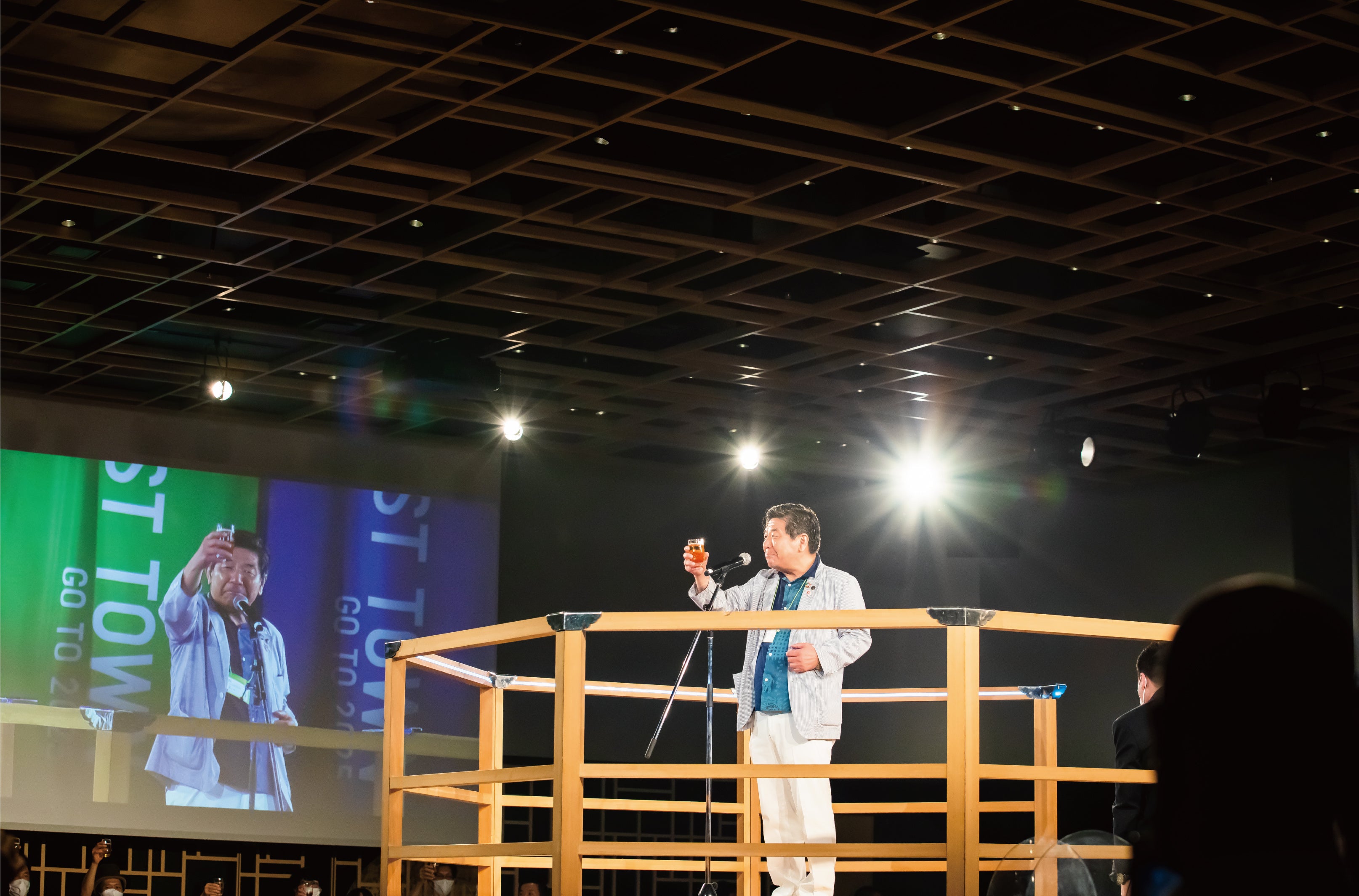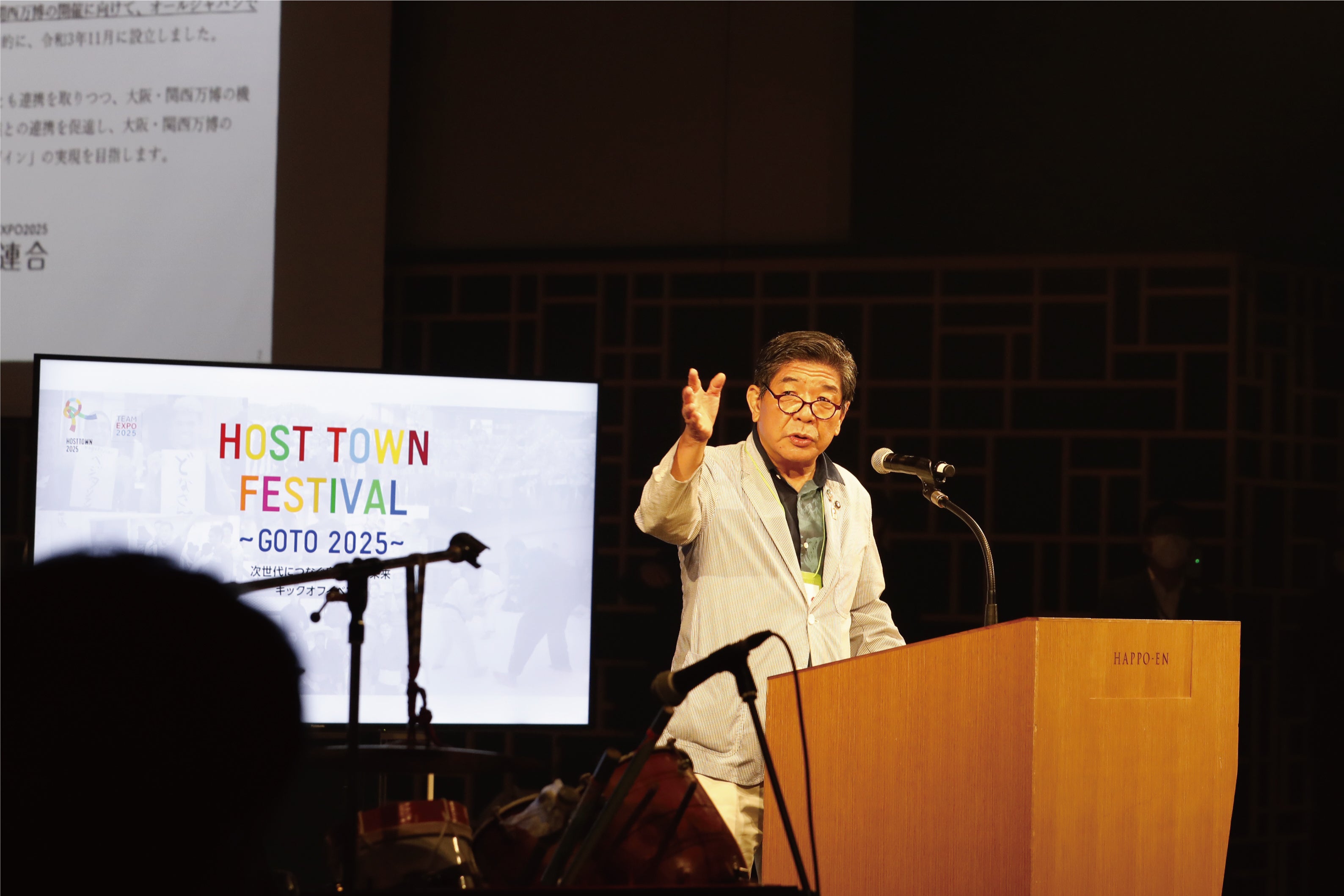 ホストタウン活動の過去・現在、そして未来を体感してきたイベントもクライマックスに。最後は万博首長連合会長 大阪府高石市長 坂口伸六氏からの締めの言葉で第一部もフィナーレを迎えます。