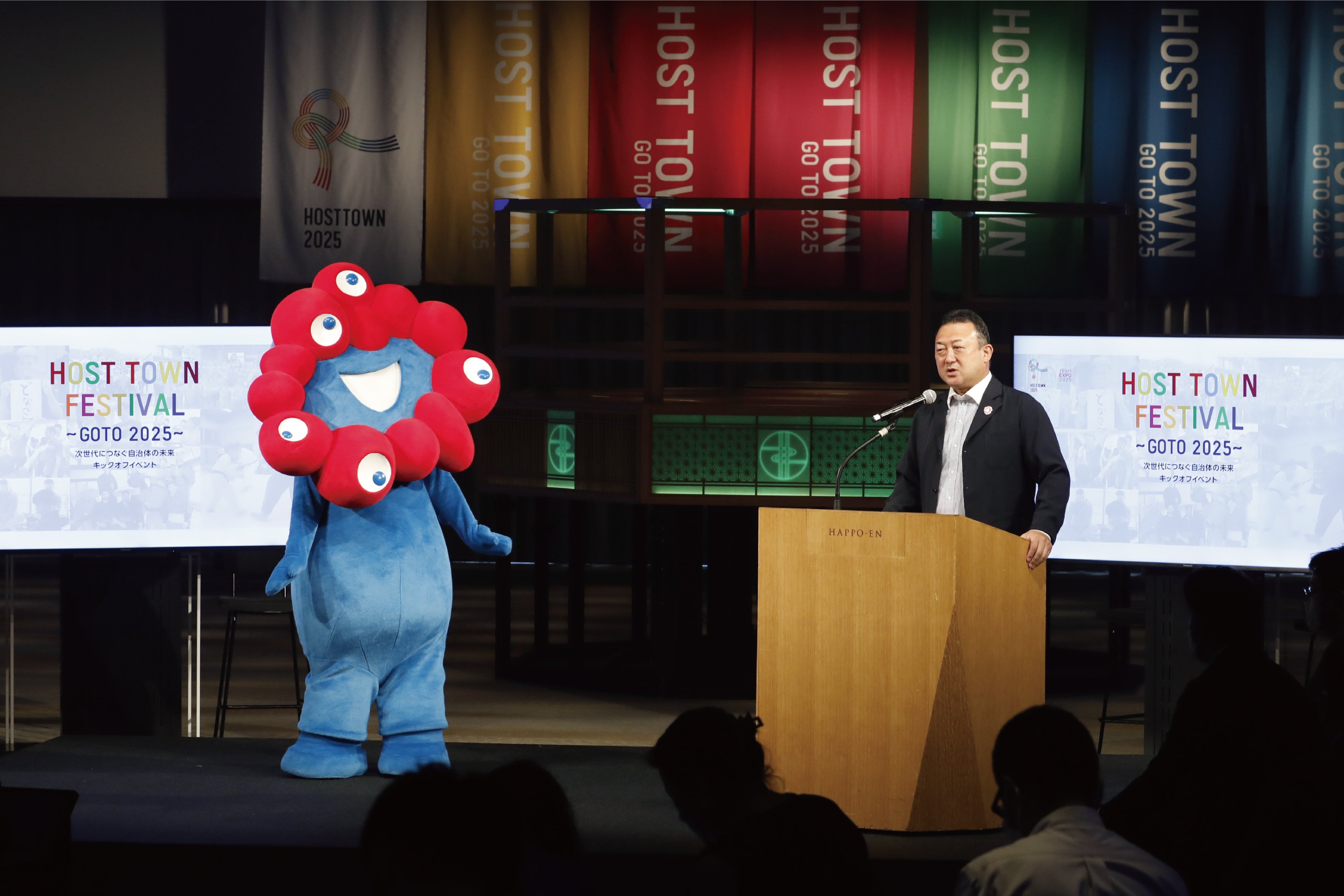 半日を通して開催された「HOST TOWN FESTIVAL~GO TO 2025 次世代につなぐ自治体の未来~」もついにフィナーレへ。ホストタウンアピール実行委員会企業を代表し浜崎氏より、「この熱量ワクワク感を大阪・関西万博へつないでいく、GOTO 2025!」との決意を新たにする宣言がなされました。