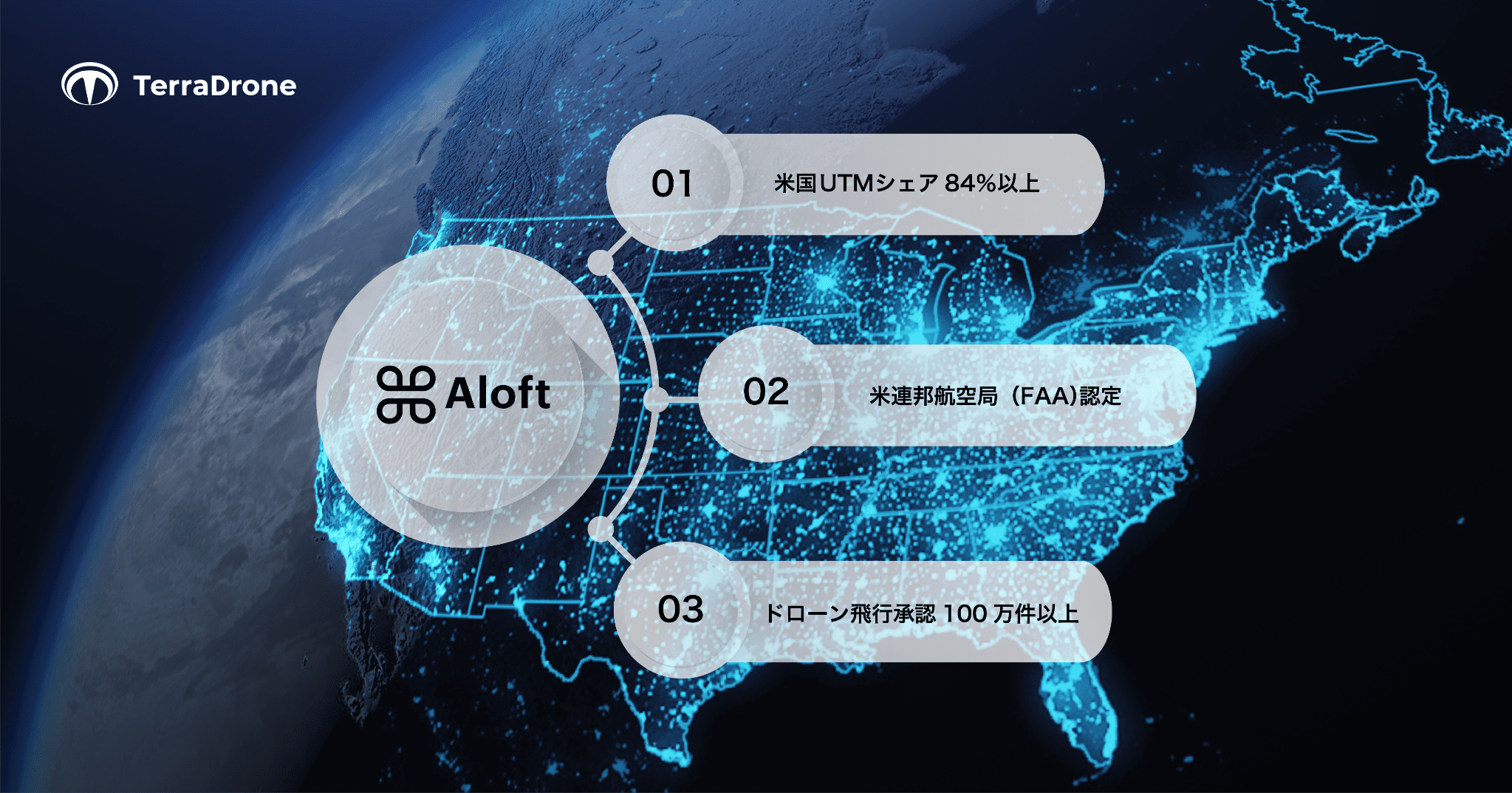 テラドローン、ドローン運航管理システム(UTM)米国シェアトップの「Aloft Technologies」に出資し米国市場に参入