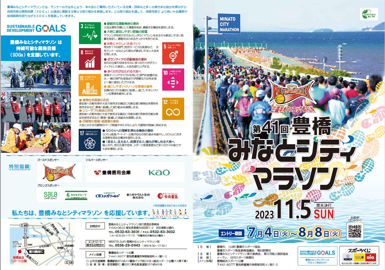 (申込期間延長しました)三遠ネオフェニックスRUN 第41 回豊橋みなとシティマラソン参加者を募集中です!8月31日(木まで)