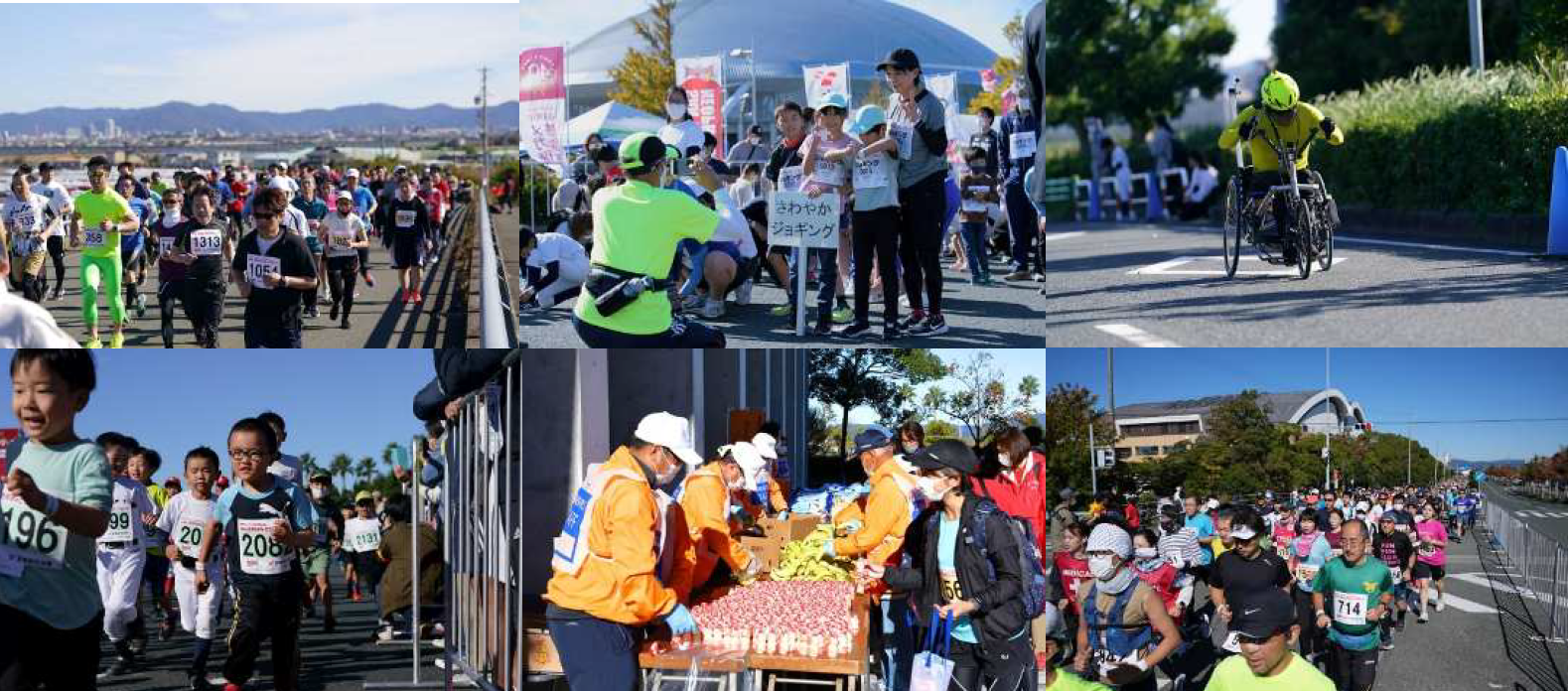 幅広い距離選択ができ、幅広い年代が参加できる大会となっており、車椅子とハンドサイクルでも参加できます