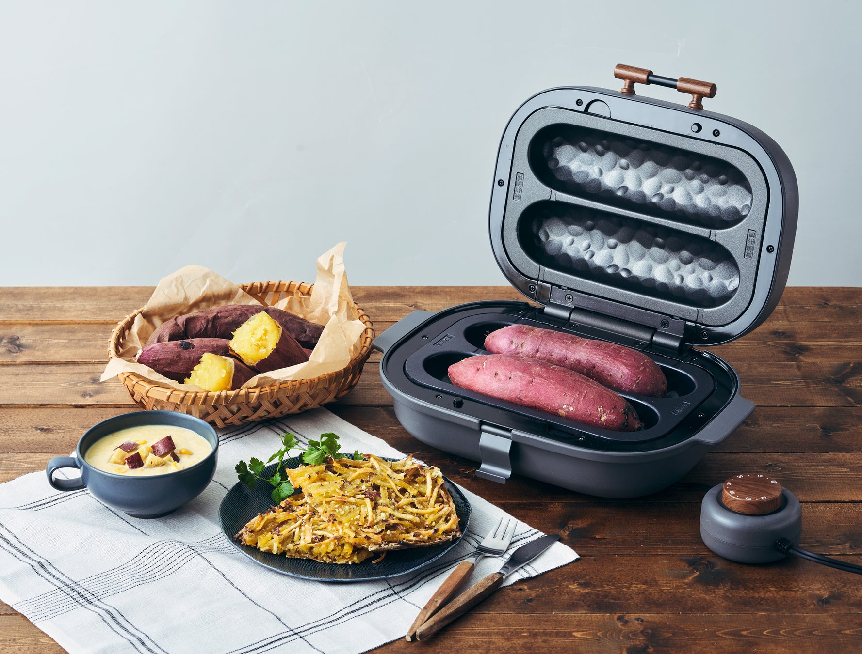 「焼き芋メーカー」は2017年に販売を開始して以来5年の間、たくさんのご好評を賜り、累計出荷台数が10万台を超える「単機能型ホットプレート」としては異例の大ヒット&ロングランを記録しております。現在の「第4次焼き芋ブーム」は健康志向の高まりなどの理由から数年続いており、専門店の新店出店やイベントの開催なども頻繁に行われています。