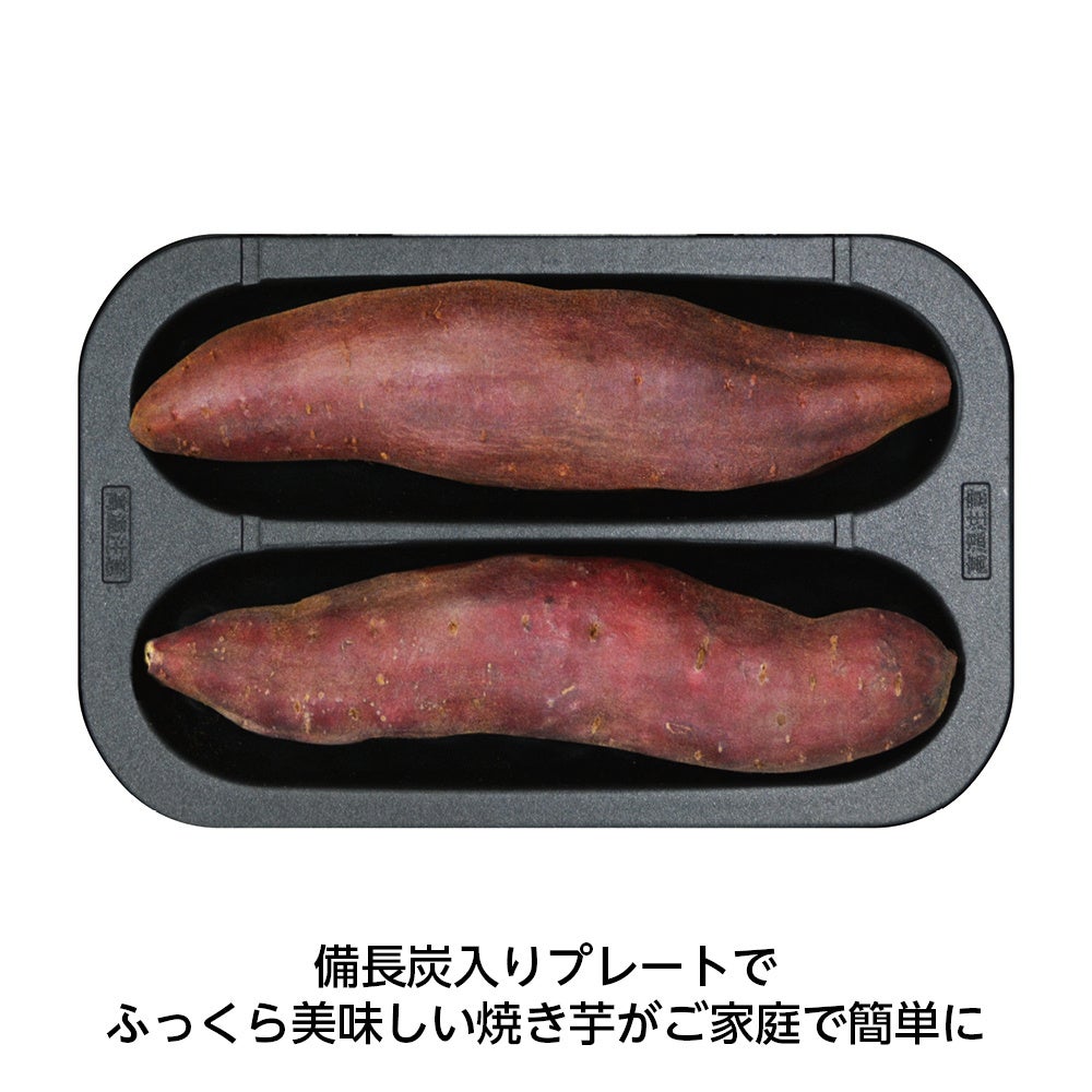 プレートは直径(約)6cm×長さ(約)22cmまでのさつまいもに最適な大きさで、さつまいもに熱が均等に伝わるように表面に凹凸をつけ、フッ素コーティング処理をしています。本体上下のヒーターでじっくり包み込むように焼き、熱がさつまいもの芯まで伝わる構造になっています。
