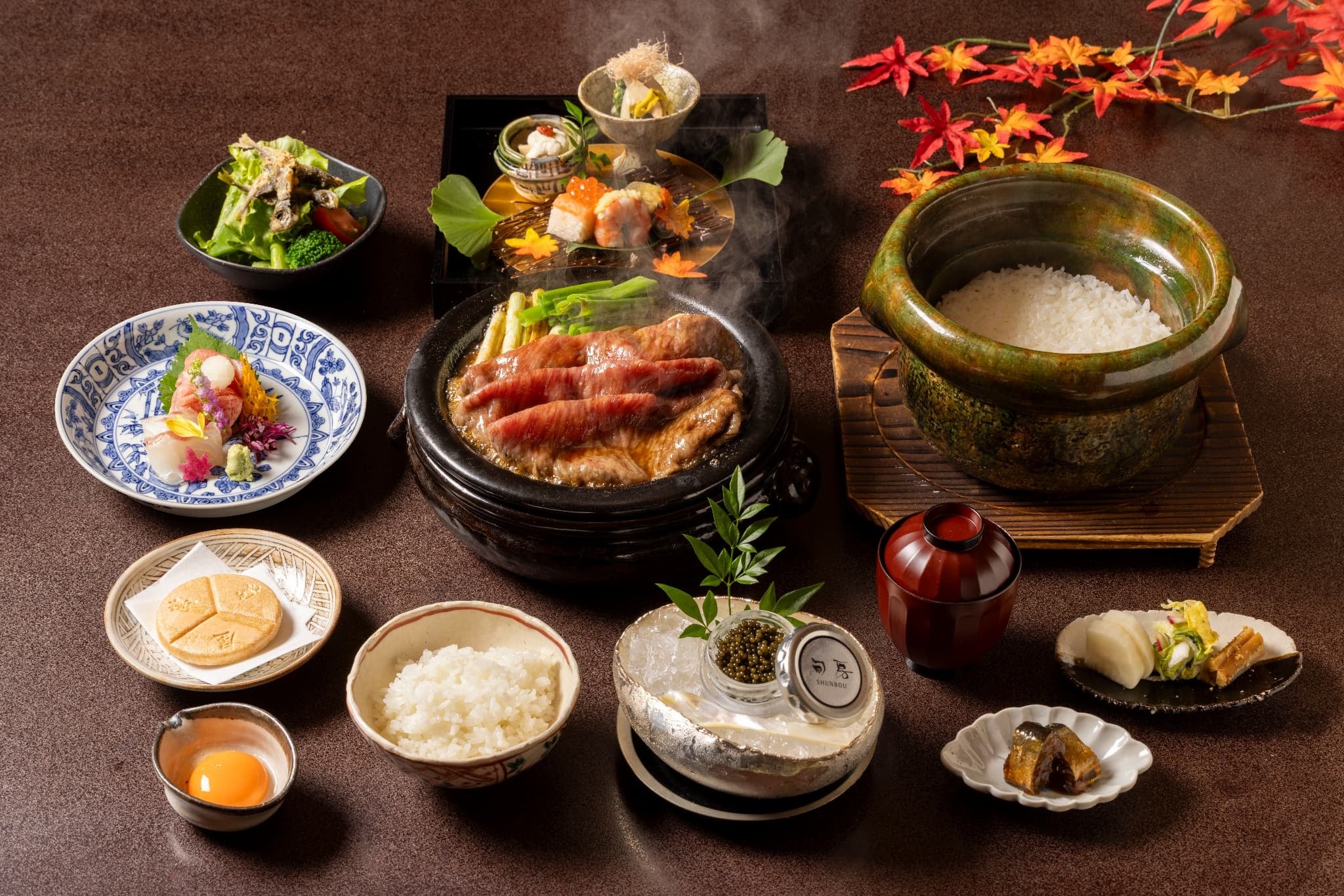 旬房米10周年を記念し、釜で炊き上げた旬房米の新米を堪能いただく特別ディナーコースをご提供いたします。新米のお供には、根強いファンも多い「飛騨牛 すき煮」を主菜でご用意いたします。中川一辺陶氏による「宝楽」という陶器で調理し、お肉はほぼレアの状態で運ばれますが、鍋が大変熱く温められているので、お席に運ばれると丁度よい火入れになり、自家製のタレがご飯と合う逸品です。さらにオプションとしてキャビアとお召し上がりいただく極上卵かけご飯もご用意いたします。旬房オリジナルラベルの国産キャビアを1瓶ご用意いたしますので、炊き立ての新米にふんだんに乗せてご堪能ください。デザートには、山形県のお菓子「なんじょだべ」を旬房米の米粉でつくる新食感もなかクッキーをお楽しみいただけます。