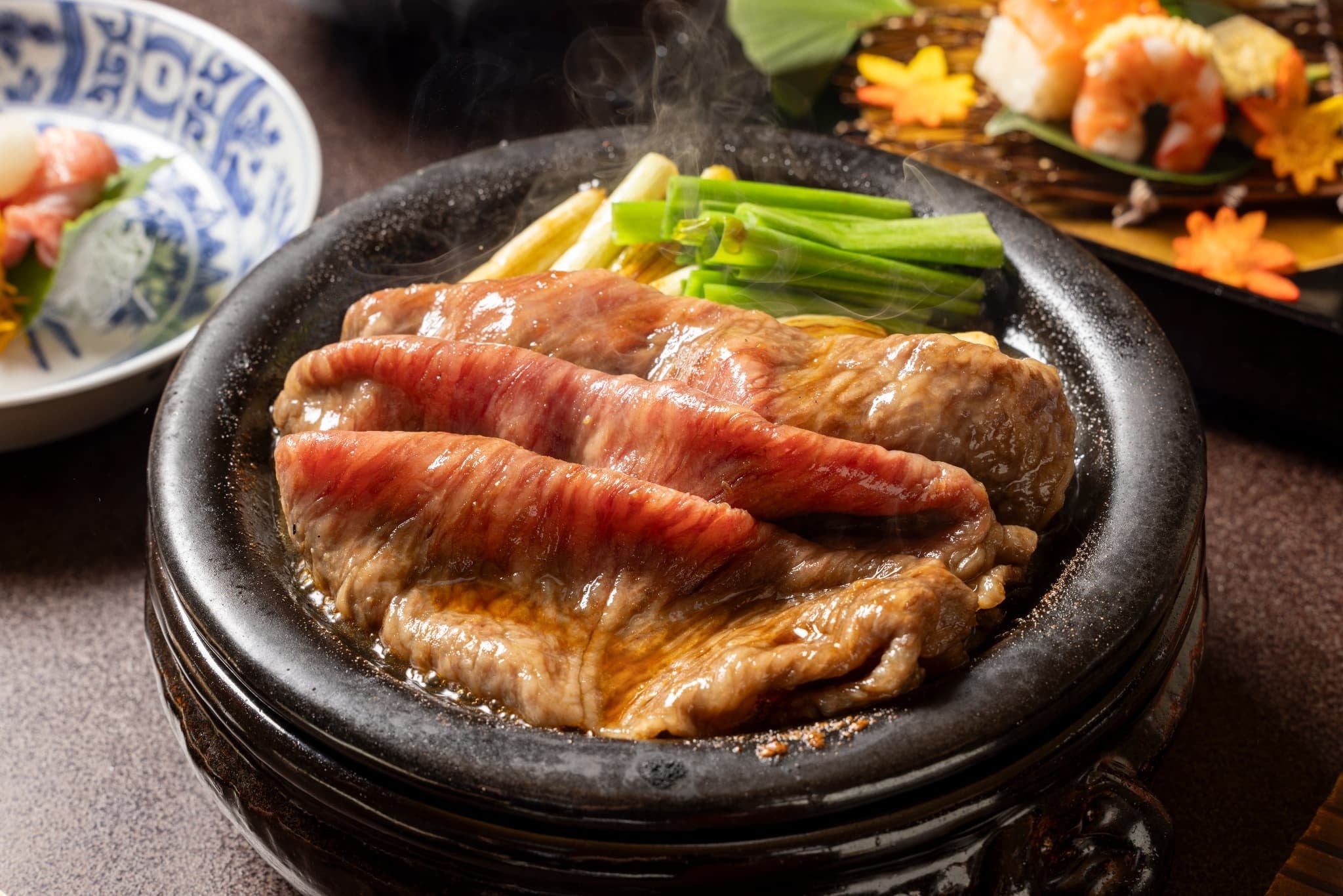 ー主菜 :飛騨牛 宝楽炭火焼き 又は 飛騨牛 すき煮