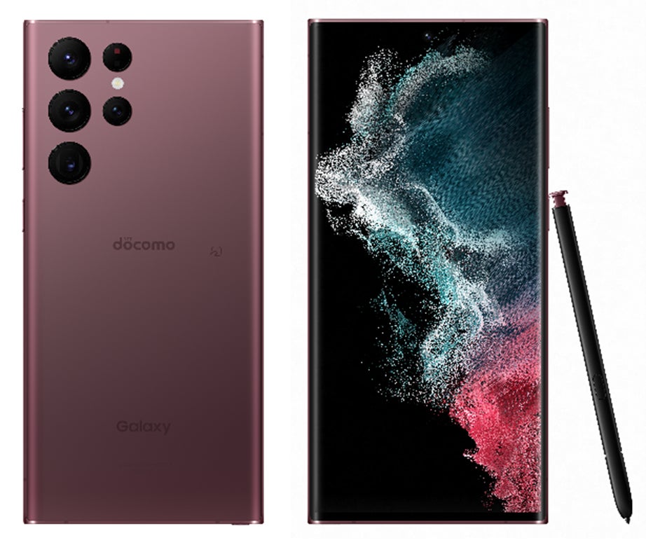 「Galaxy S22 Ultra」は、バーガンディ、ファントムブラックの2色展開です。Galaxy Sシリーズ史上初のSペン内蔵デザインを採用しました。スマートフォンからSペンを取り出すだけでメモが起動し、いつでもどこでもメモが残せるだけでなく、スケッチやスマートフォンの操作も簡単に行うことが可能です。また、約3倍※1 改善したレイテンシーにより、まるで本物のペンのようにスムーズで快適な書き心地を実現しました。ドコモ限定アプリ「てがき手帳」※2 にも対応し、予定管理を手書きで行うことができます。