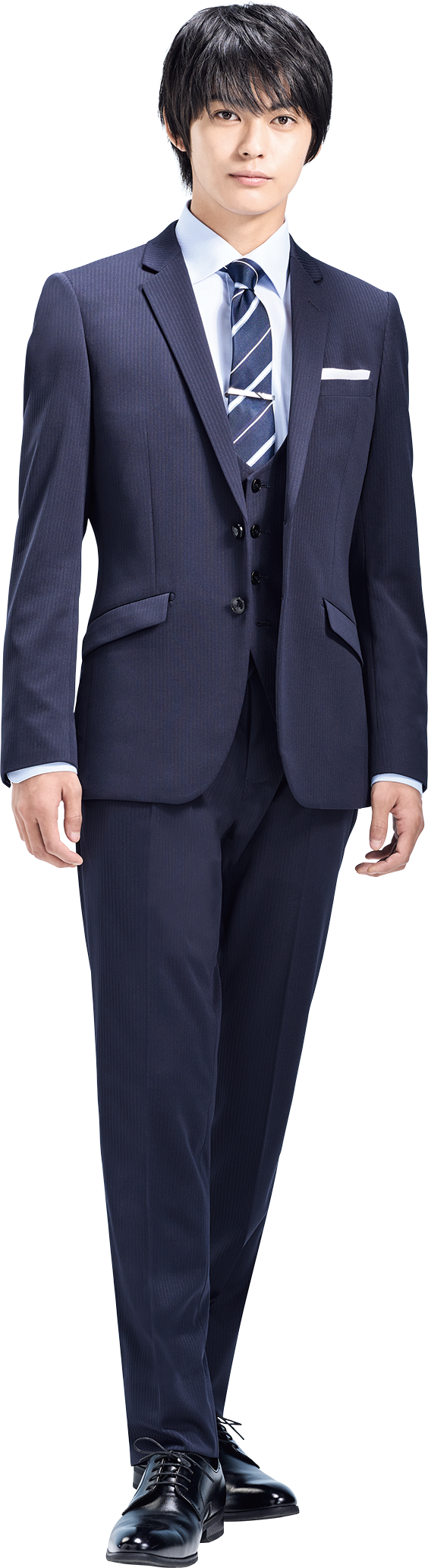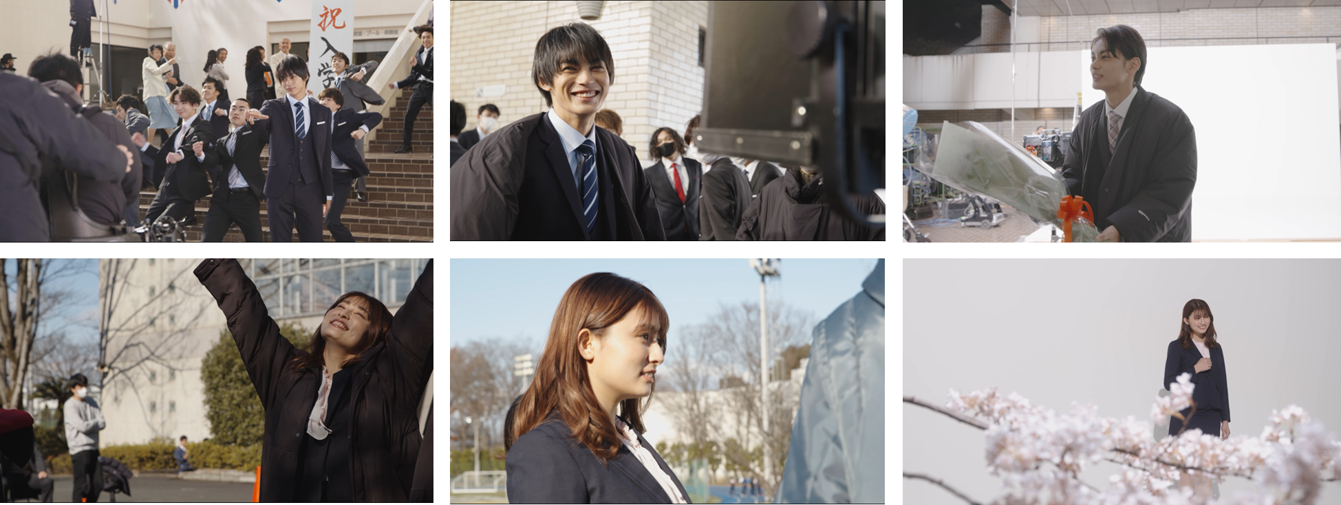 メンズ篇は、入学式会場にてスーツを着用した神尾さんが振り返るシーンから始まります。フレッシュで明るい気分になれるメロディーに乗せて、「クール3ピース STYLE」を着用した神尾さんが、他の「フレッシャーズダンサーズ」と踊り出すシーンが印象的です。また、カメラに向けて魅せるクールな表情、スーツを着こなして踊る姿、さらにはスーツのスタイルに合わせて髪型やポーズを変え、大人の着こなし3変化を披露するシーンにも注目です。