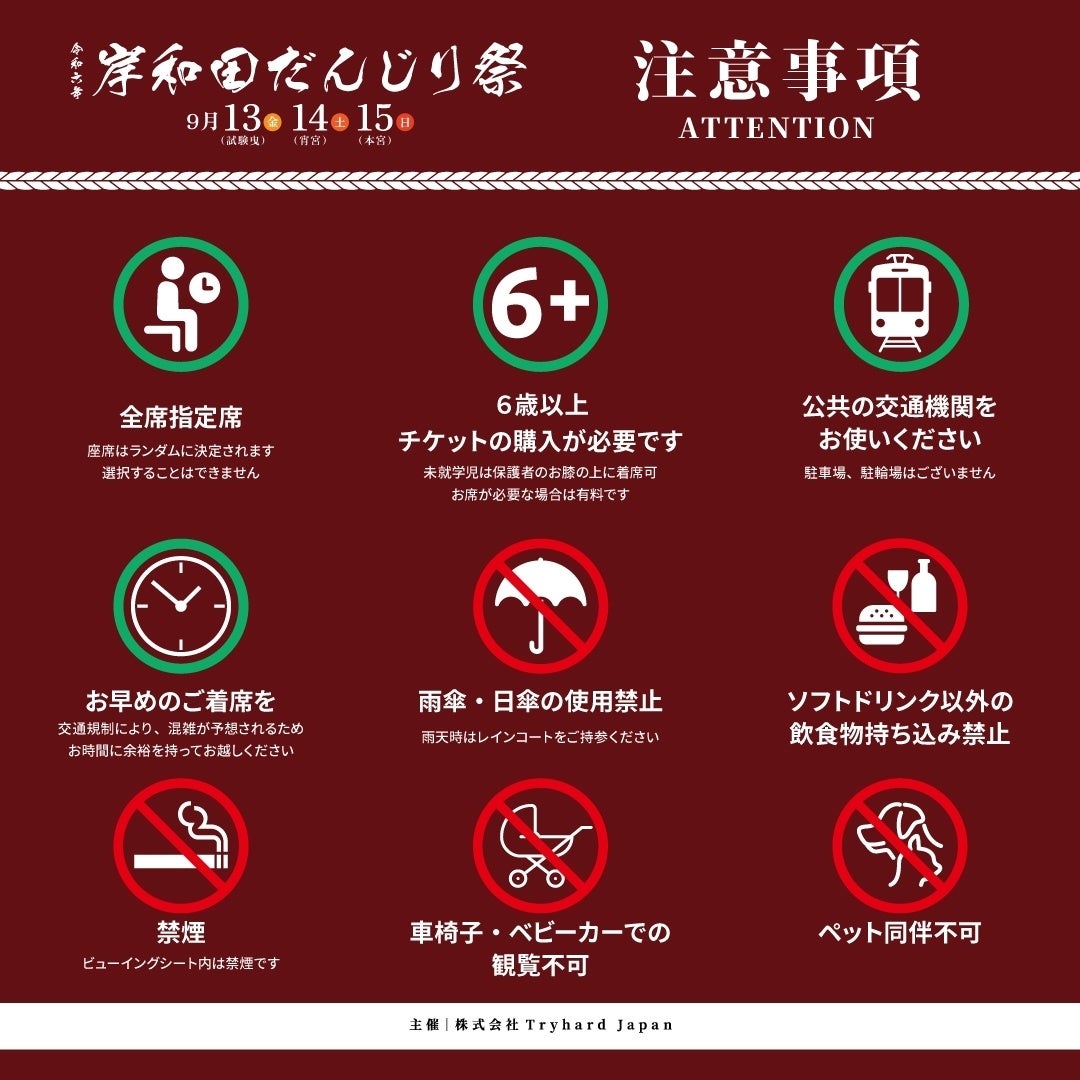 株式会社TryHard Japan(所在地:大阪市中央区)は、2024年9月13日(金)、14日(土)、15日(日)に大阪府岸和田市にて開催される「岸和田だんじり祭」のビューイングシート(観覧席)の席種を発表いたします。