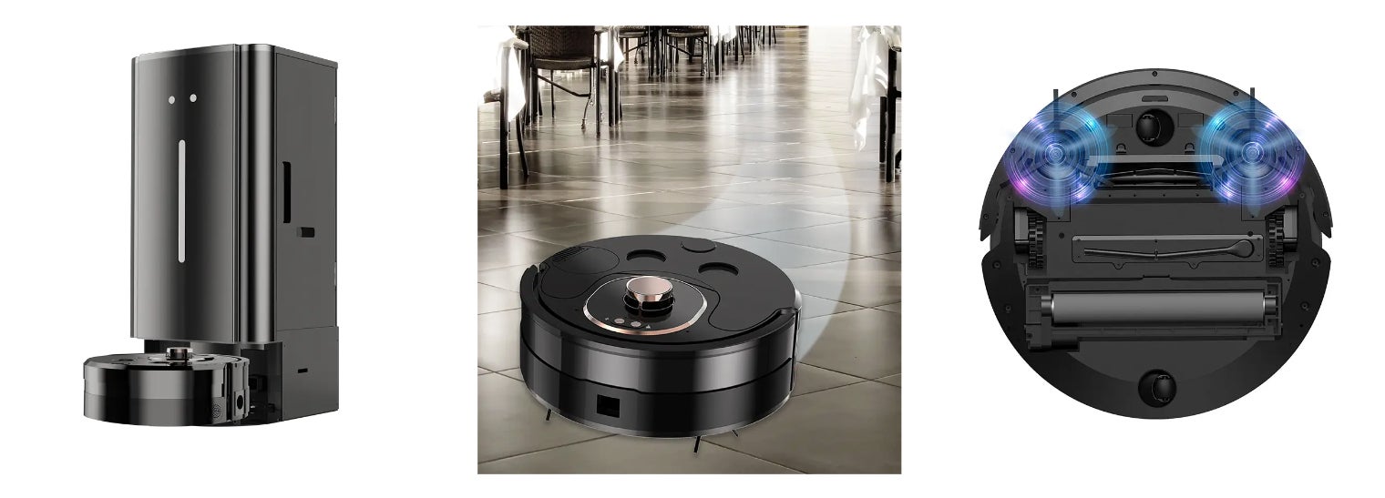 幅33cm高さ8.6cmと家庭用サイズながら、広範囲清掃能力を兼揃えた小型ロボット。吸引・水拭きに対応しており、特に水拭きは回転式モップと布モップの2種類を搭載しています。カーペットからフローリングまで幅広い床材に対応可能です。焼肉店での導入実績がある程で、油汚れなどのしつこい汚れにも対応できます。