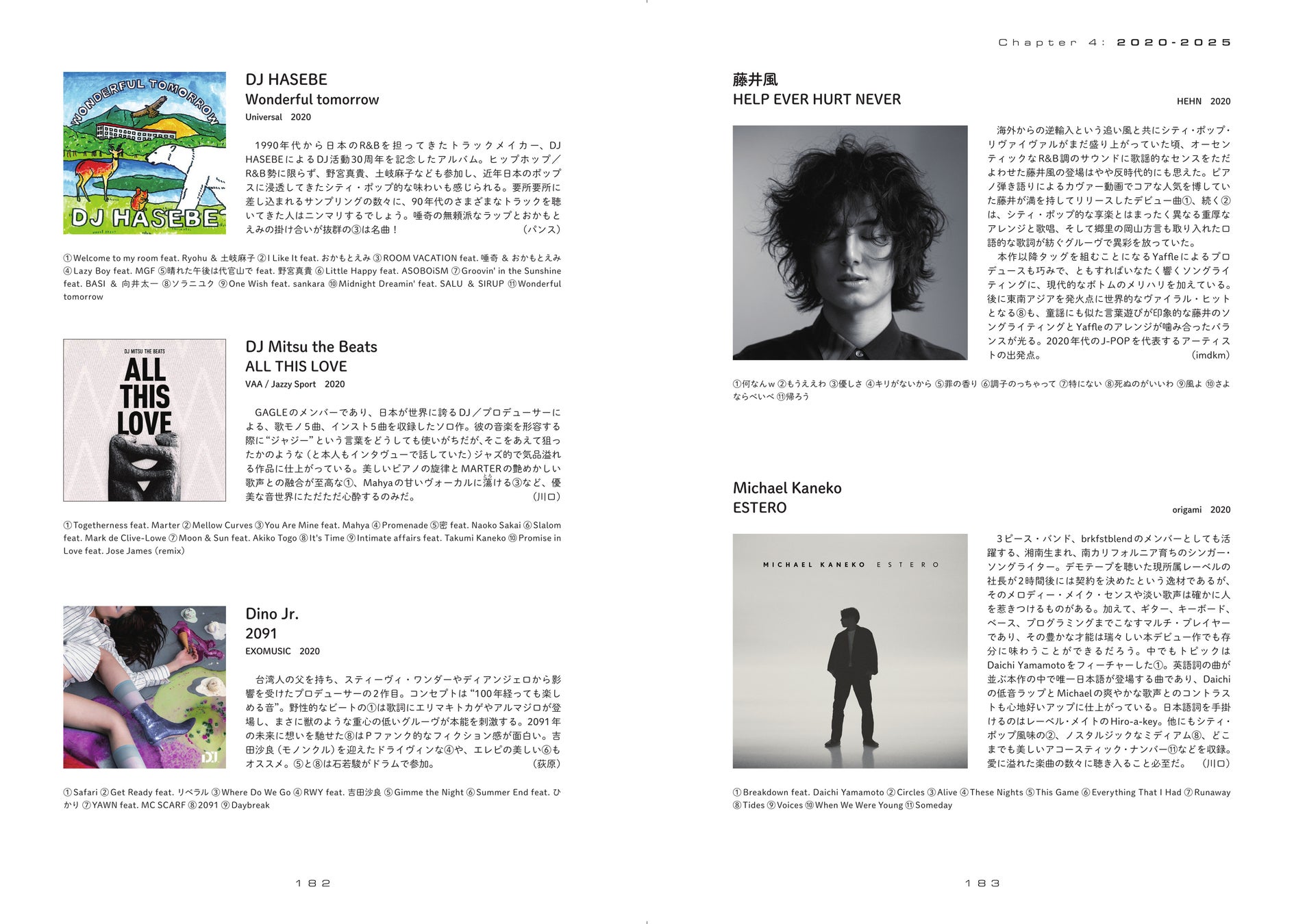 本書は、1990年代から2020年代までの 全423枚の重要作を徹底レヴューし、黎明期からディーヴァの時代、ネオ・ソウルの衝撃、オルタナティヴR&B、そして現在の拡散期まで──日本のR&Bが歩んだ35年を4章構成で総覧するガイドブックです。