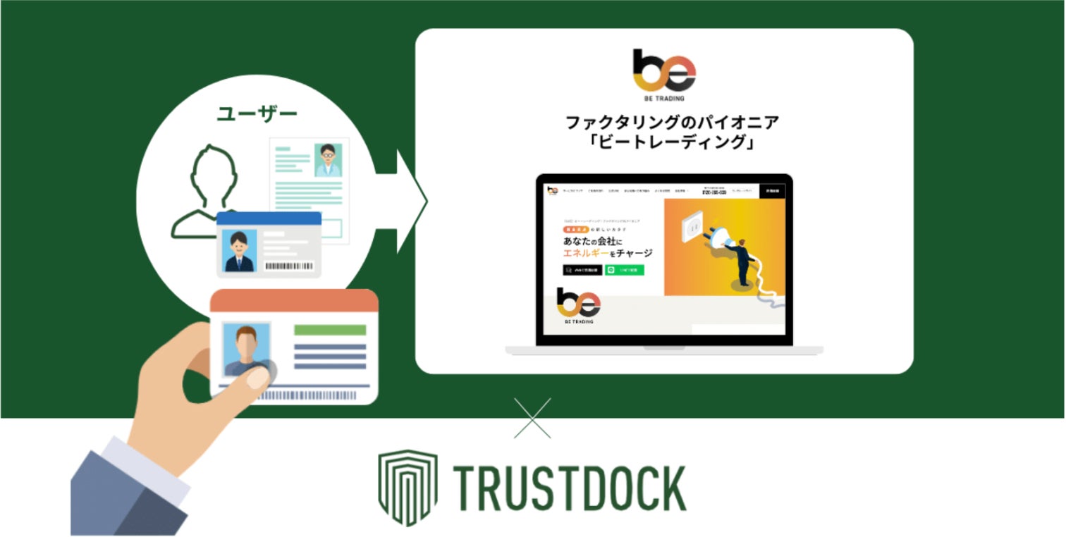 デジタル本人確認の株式会社TRUSTDOCK(本社:東京都中央区、代表取締役:千葉 孝浩、以下 TRUSTDOCK)は、株式会社ビートレーディング(本社:東京都港区、代表取締役:鈴木 秀典/佐々木 英世、以下 ビートレーディング)が運営・提供するファクタリングサービス「ビートレーディング」に、eKYC本人確認サービス「TRUSTDOCK」を提供したことをご報告します。ビートレーディングは、2024年6月にリリースしたファクタリングサービス利用者向けの会員サイトにTRUSTDOCKが提供するeKYC本人確認サービスを導入し、ファクタリングサービスにおける契約時の本人確認業務を従来よりもスムーズかつオンライン完結で行なうことが可能となります。