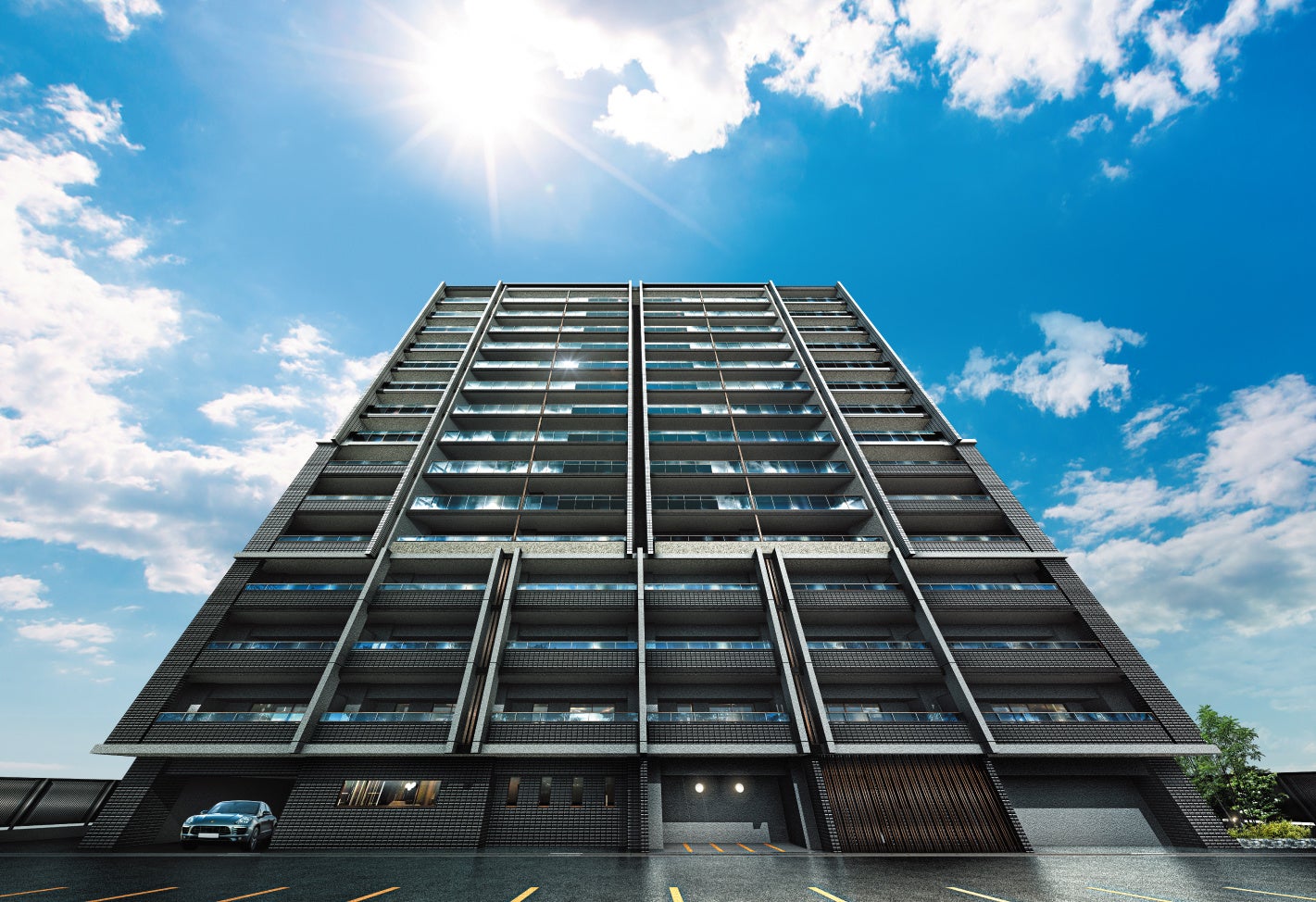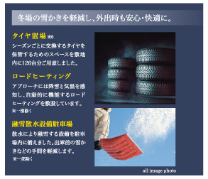 当物件は、全邸南向きの快適な住空間を実現した地上15階建・全84邸。広大な敷地を贅沢に利用したゆとりあるレイアウトから、全邸分を超える150%の敷地内平置駐車場、緑に彩られた奥行きあるアプローチなど、近隣では類を見ないランドプランが描き出されました。