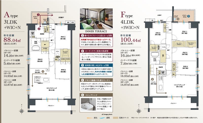 快適な採光・通風が確保された全84邸南向き・全6タイプの住空間。インナーテラス付のプラン(一部除く)をご用意するなど、日常に新たなシーンを創る提案も導入しております。