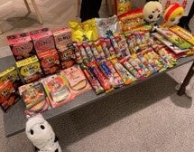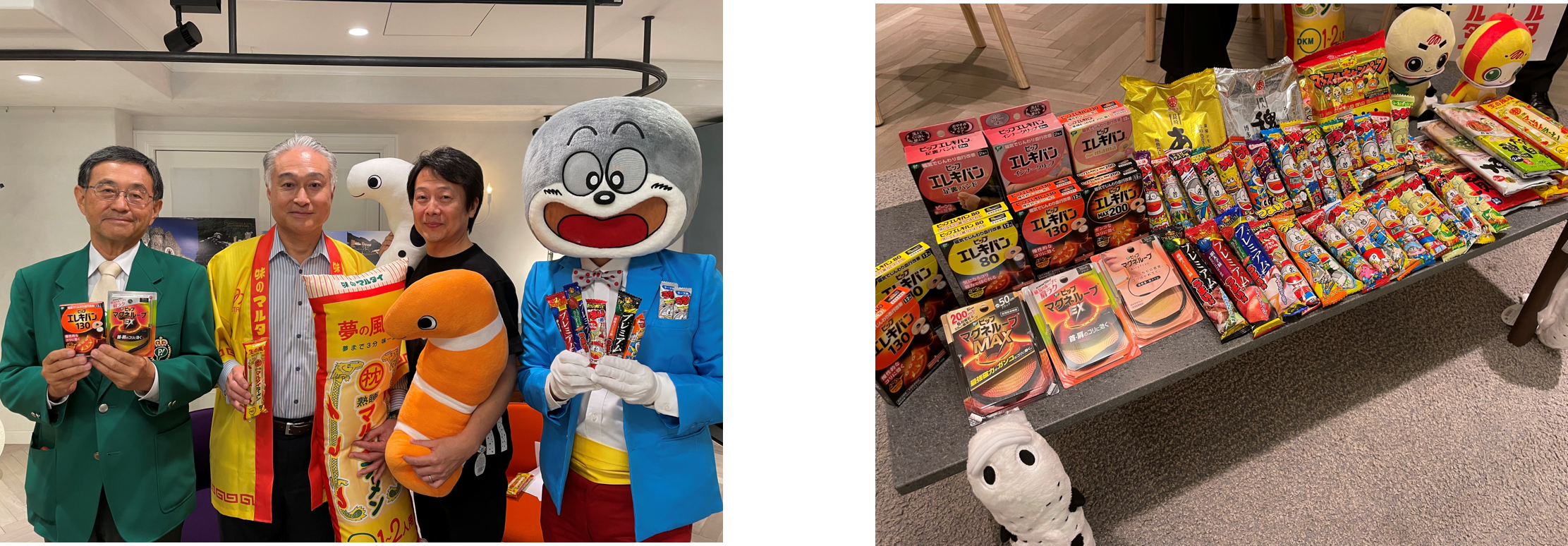 出演者の前に置かれているテーブルには、各社の代表商品などが陳列されていました。撮影前には、チンアナゴのぬいぐるみがうまく固定できず、苦労した場面も。ぜひ、テーブルの上にも注目してご覧ください。