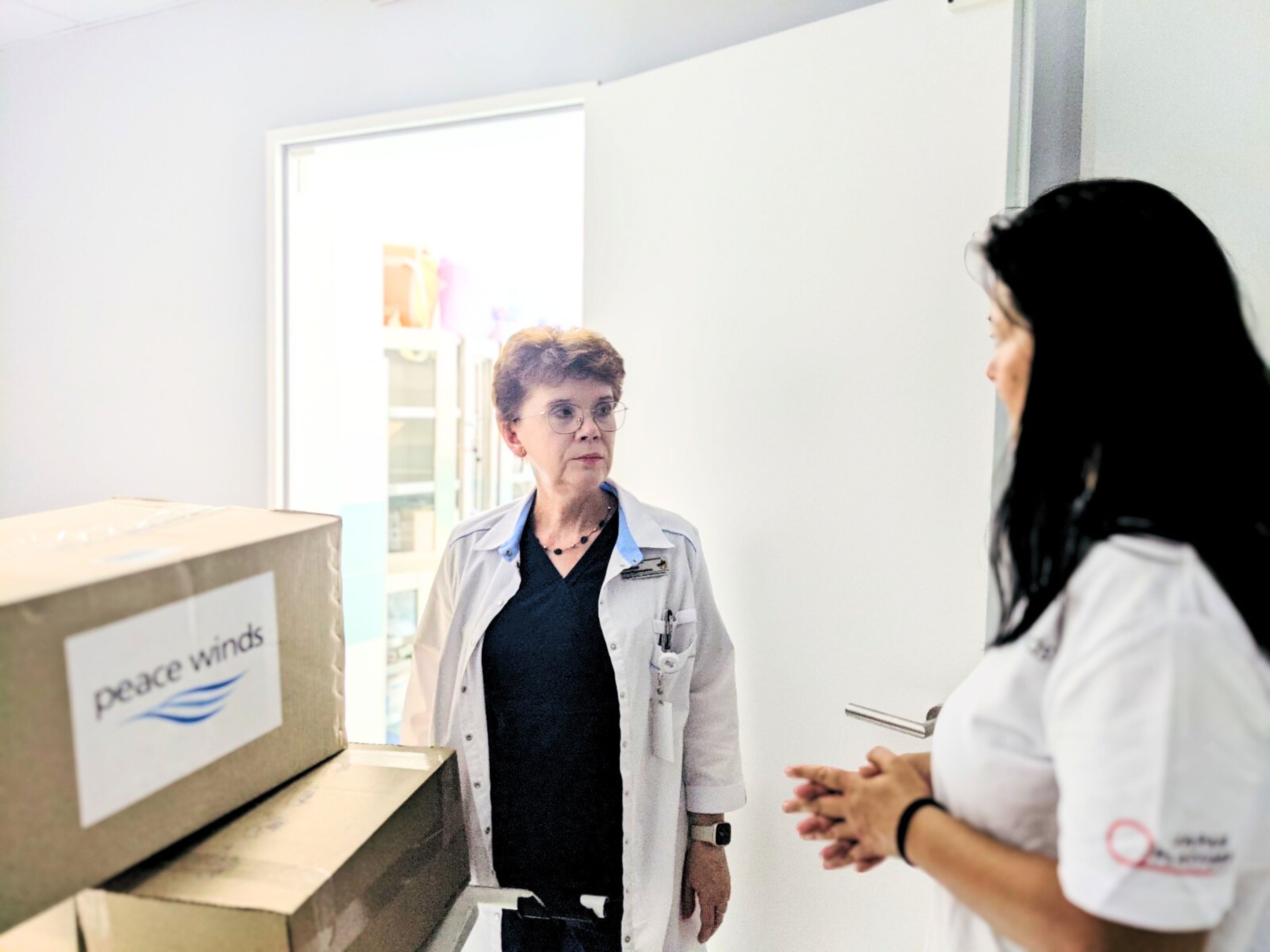 受け入れ先の病院では、子ども用の衛生用品、おむつ、粉ミルクなどが不足していました。また、ウェットティッシュや防水シートなどの衛生用品のニーズが高かったため、2024年7月9日、スタッフが必要な物資を届けました。