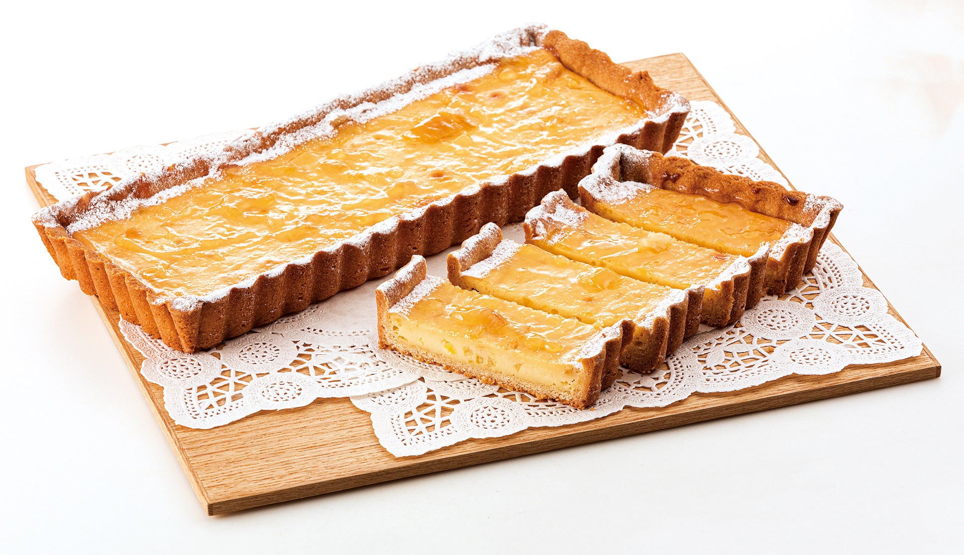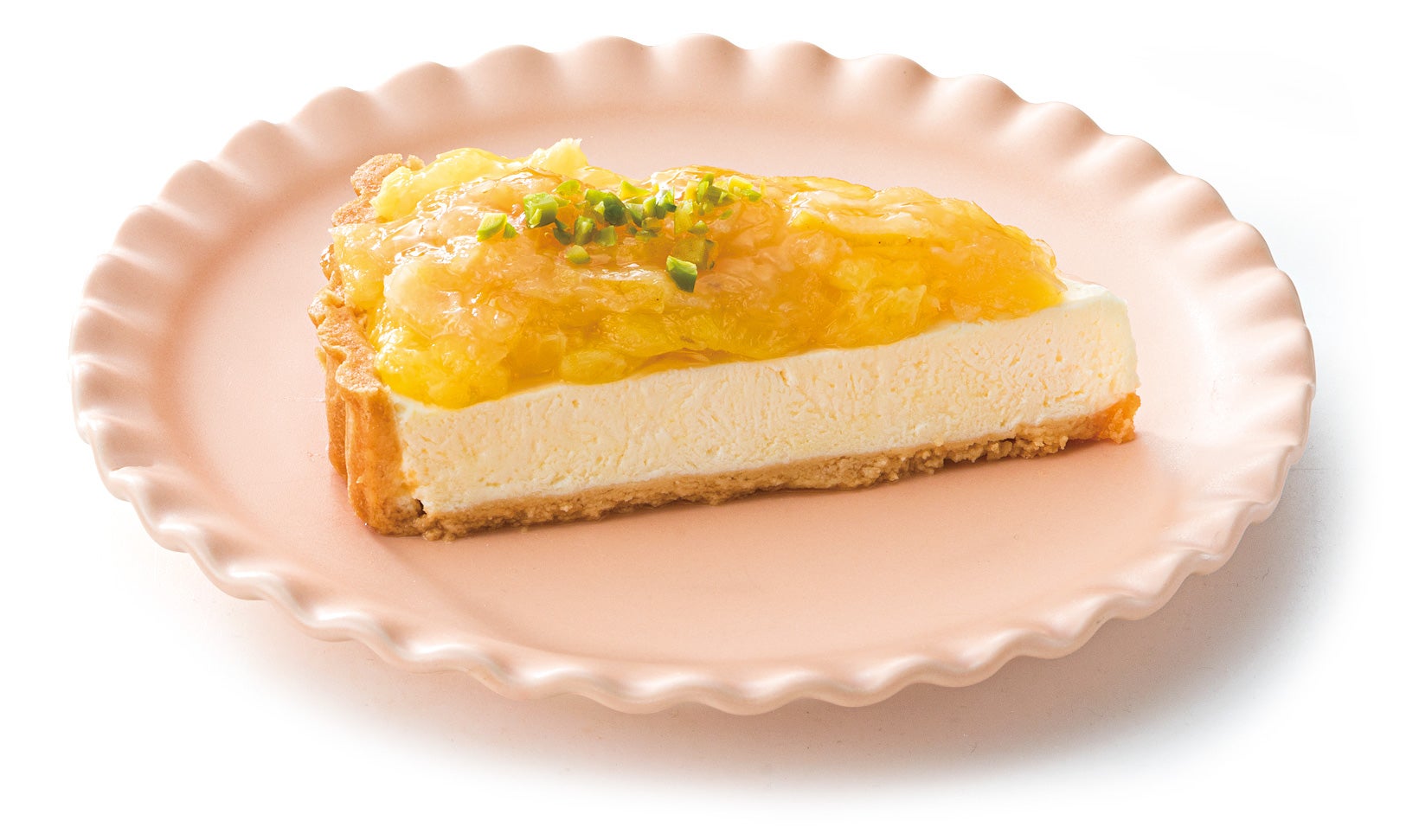 生の湘南ゴールドに、湘南ゴールドのジャムがアクセントになった爽やかなレアチーズタルトです。
