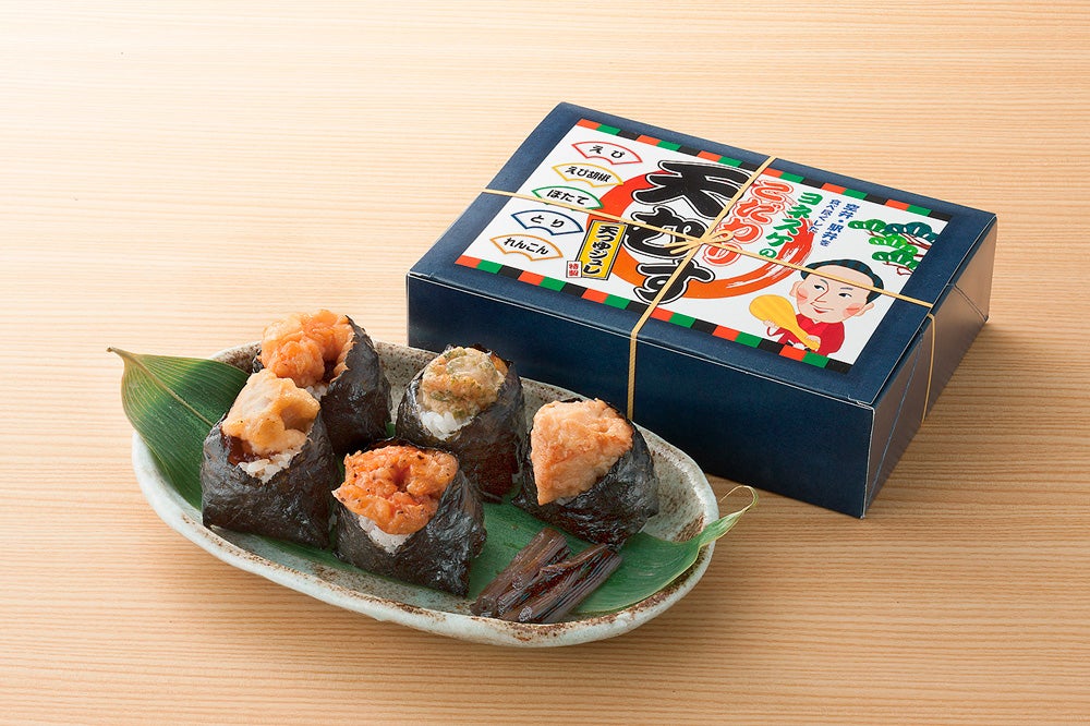 落語家のヨネスケ氏の監修を受けて開発した、食べやすさにこだわった、飽きのこない5つの味付けをセットにした新しい空弁です。