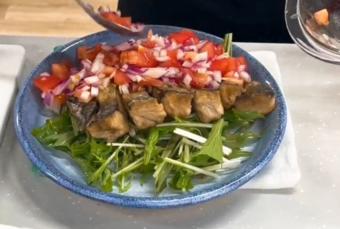 華やかで手間がかかるように見えるレシピですが、試作での調理時間はわずか10分でした。脂の多い鯖でも、トマトと玉ねぎのソースをかけることで飽きがこず、美味しく食べることができました。また、鯖を揚げ焼いている際にサルサソースが完成してしまうのも高評価の理由のひとつです。なお、グランプリレシピはインスタライブでも実際に調理しました。