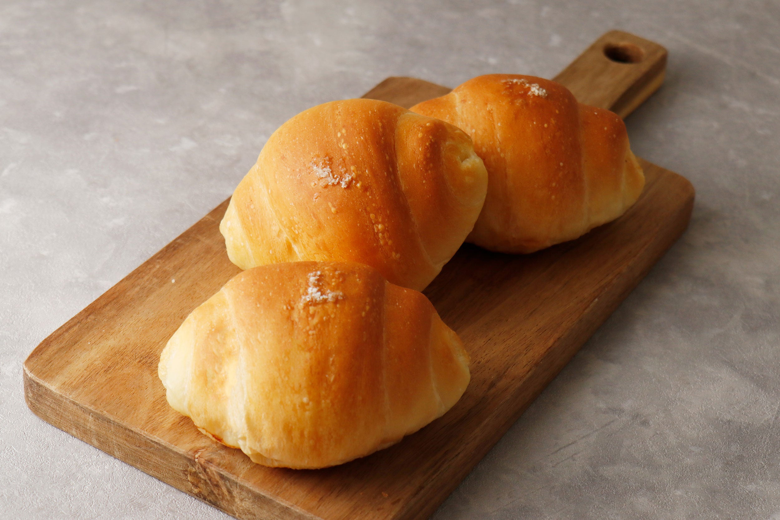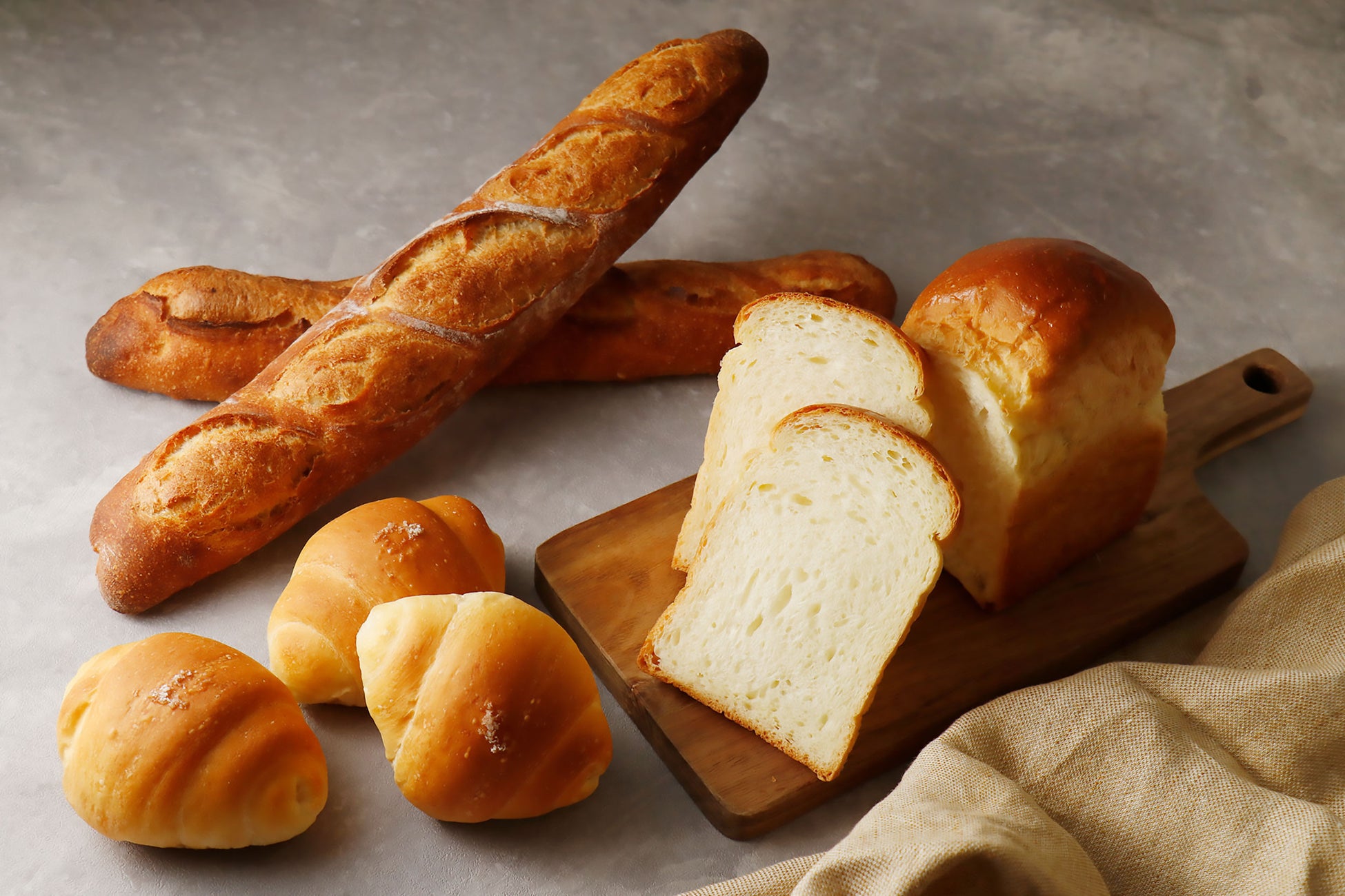 低温でじっくりと熟成発酵させ仕上げた「バゲット(画像左上)」、優しい口当たりに仕上げた「食パン(画像右)」、ゲランドの塩とカルピス発酵バターを使用した「塩バターロール(画像左下)」