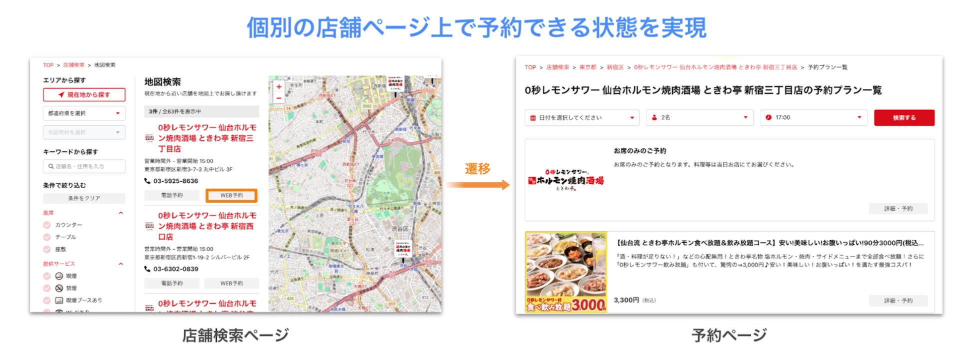 これにより、飲食店は自社HPから予約サイトに遷移させずに予約できる導線を作れるようになりました。お客様視点では、「より見やすく」「利用しやすい」お店ページが実装されます。