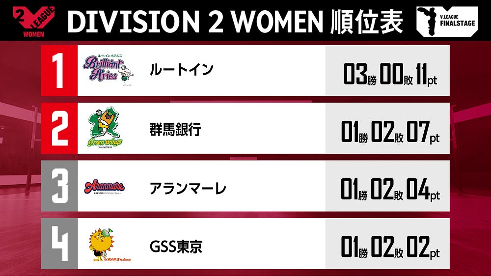 V・レギュラーラウンド1位から白星を奪い、V2女子初優勝となったルートイン 3月27日 対群馬銀行戦