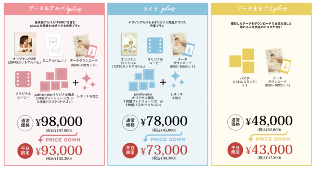 特別商品やプラン、当日の過ごし方、オプションなど、Palette+plusで注目すべき魅力がたっぷり。