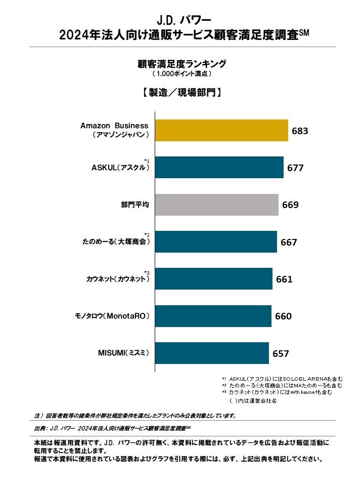 「たのめーる」、「Amazon Business」、「Ciモール」が各部門で総合満足度第1位【J.D. パワー 2024年法人向け通販サービス顧客満足度調査℠】