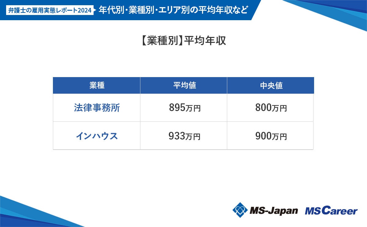 「【弁護士の雇用実態レポート2024】年代別・業種別・エリア別の平均年収など」
