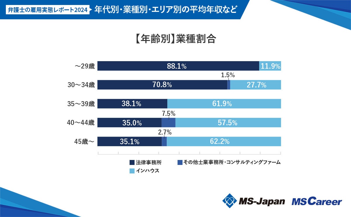 ・30代前半と後半を境目に「法律事務所」と「インハウス」の割合が逆転
