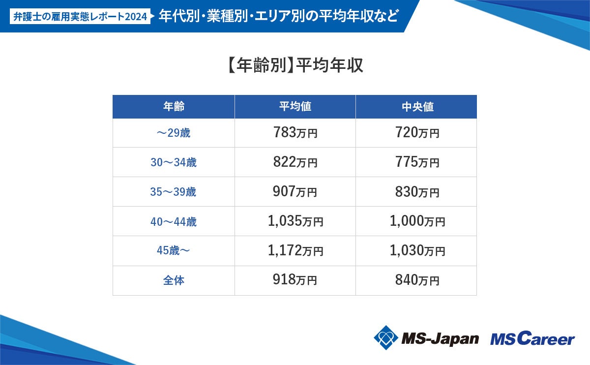 MS-Japanが『弁護士の雇用実態2024』を公開。平均年収は918万円で、40代では1,000万円越え