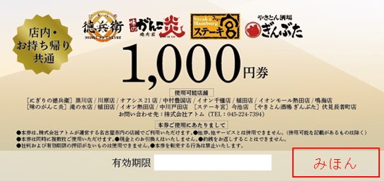コロワイドグループの株式会社アトム(本社:神奈川県横浜市、代表取締役社長:山角豪 )は、名古屋市のふるさと納税の返礼品として、名古屋市内の「にぎりの徳兵衛」、「味のがんこ炎」、「ステーキ宮」、「焼きとん酒場ぎんぶた」でご利用頂ける「アトムグループお食事券(以下、お食事券)」を提供いたします。
