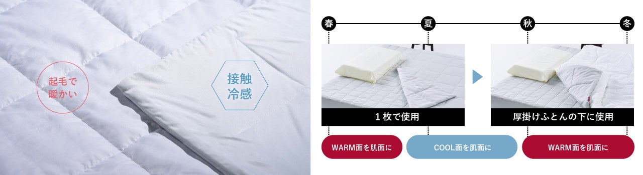 ひんやり&温もりのリバーシブル仕様で、365日使える。丸洗いできて軽量コンパクト!