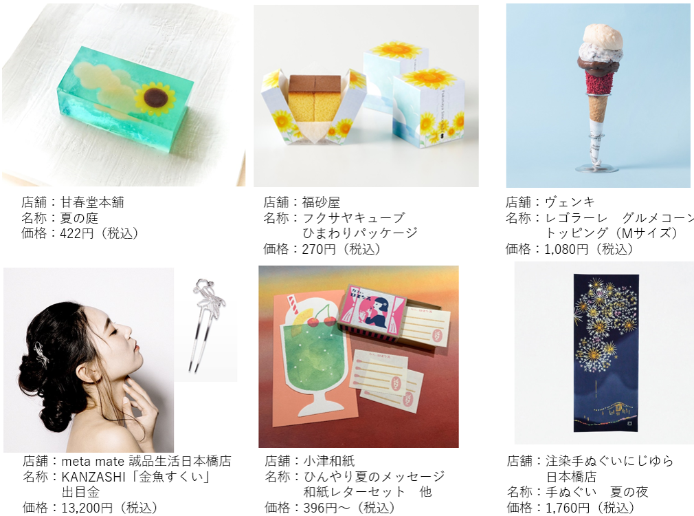 今年は、“夏”をテーマにしたフォトジェニックなオリジナルスイーツ、フード、ドリンク、グッズを販売。昨年度開催の約3倍となる日本橋エリアの約160店舗もの老舗企業や百貨店、高級ホテルが浴衣でおさんぽを楽しむシーンにぴったりなメニューを提供します。