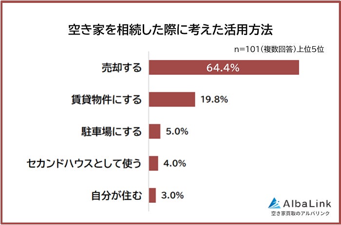 今回、株式会社AlbaLink( https://albalink.co.jp/ )が運営する訳あり物件買取プロ( https://wakearipro.com/ )は、自身や家族が空き家を相続した経験がある101人を対象に「やって良かった空き家の活用方法」についてアンケート調査を実施しました。
