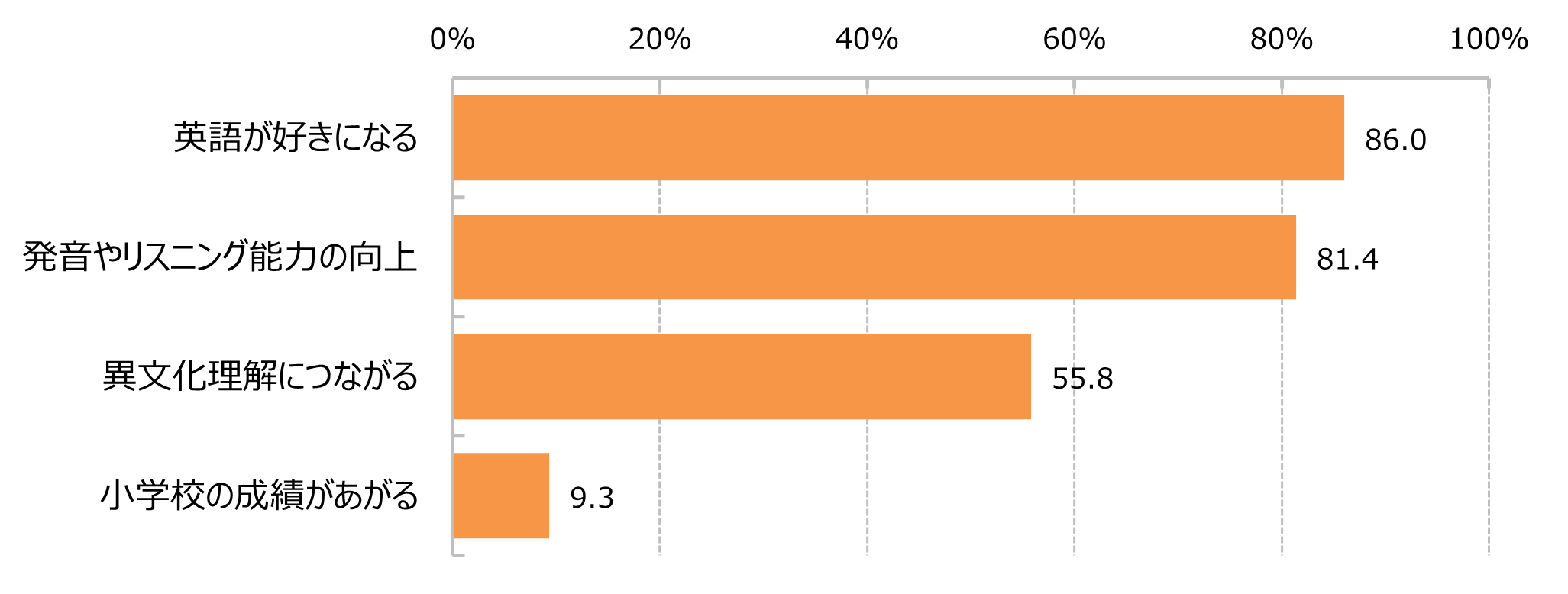Q お子さんが英語教室に通っている(いた)人にお聞きします。子どものうちから英語を習うことに、何を期待しますか? (複数回答)(n=86)