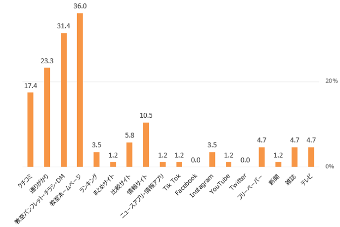 2位は「教室パンフレット・チラシ・DM」(約31%)で、クチコミ・SNSを上回る