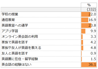 Q あなたのお子さんの英会話の経験について、あてはまるものをすべて選んでください