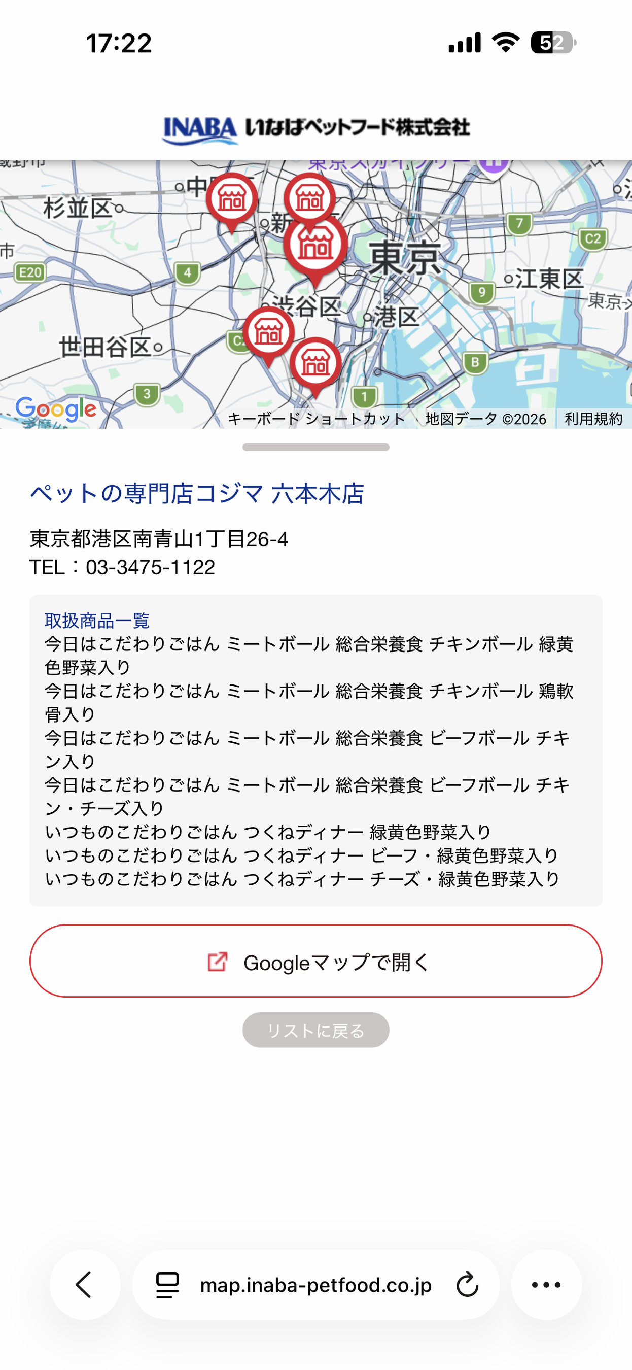 いなばペットフード 「冷凍ペットフード店舗検索マップ」の商品表示機能を改修