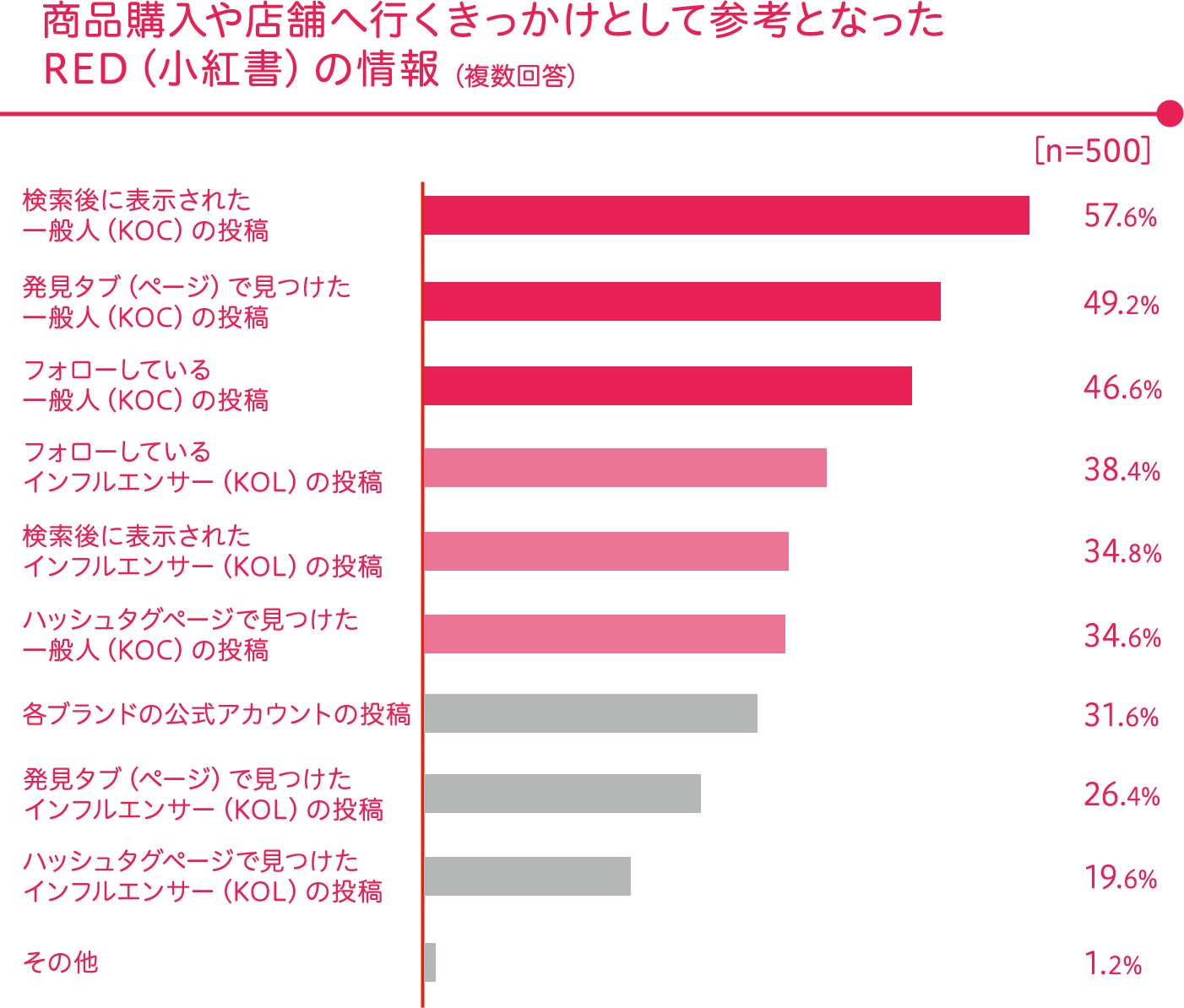 ■在日中国人の商品購入、店舗来店のきっかけとなるREDの情報は「KOLの投稿」より「KOCの投稿」が多い